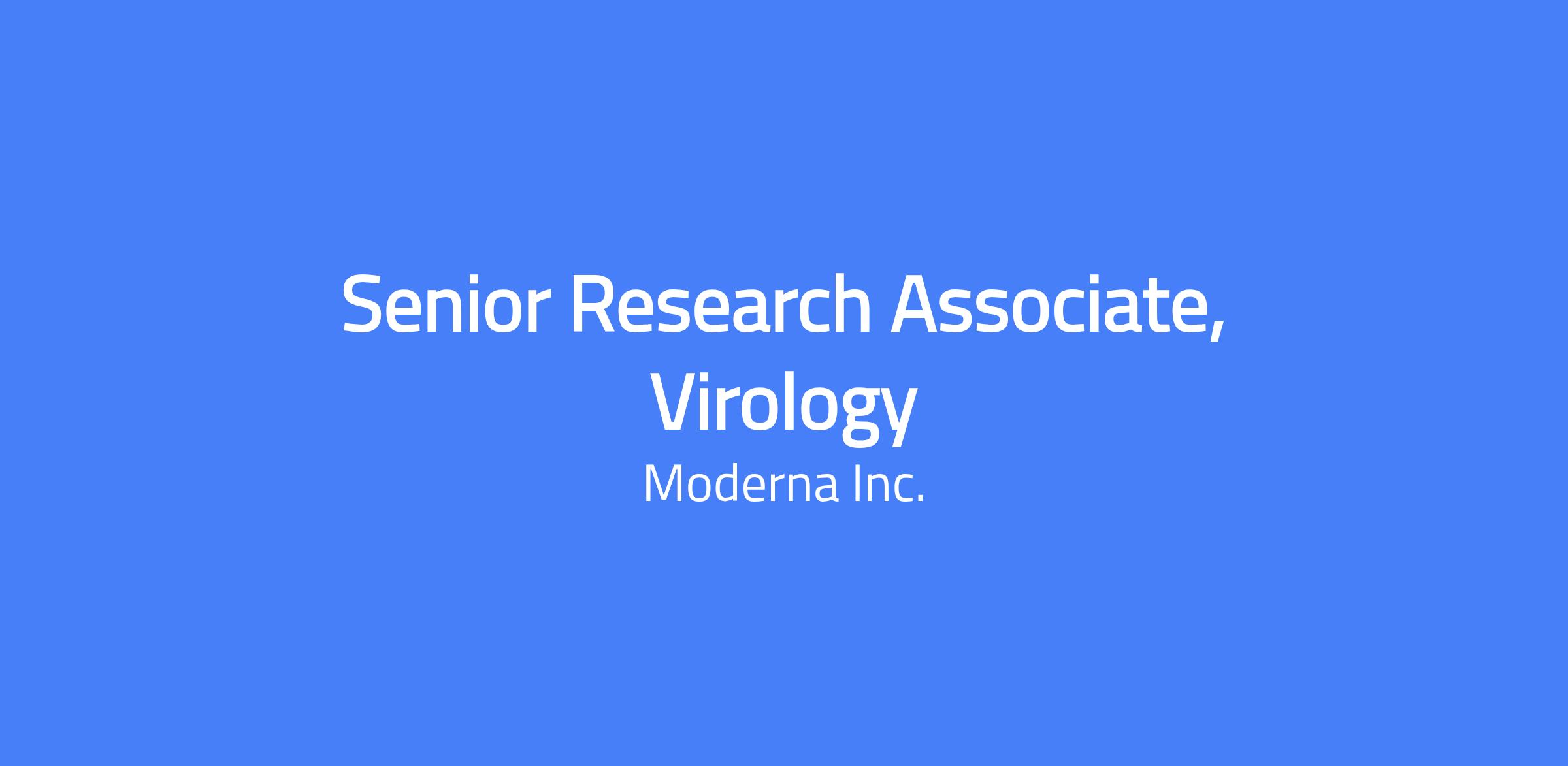 The Role The Infectious Disease Department is seeking a self-motivated and adaptable Senior Research Associate or Research Associate with strong experience working with murine models and in vivo related techniques to support the development of novel vaccines and therapeutics. This position will contribute across all IDR programs through the performance and development of in vivo based experiments in biosafety level 1 and 2. The candidate will support the IDR comparative medicine team interfacing with multiple functional teams within IDR. The individual will help to ensure the accurate and quality execution of in-vivo based experiments. Here’s What You’ll Do Carry out technical procedural work including dosing (all major routes including intravenous, intraperitoneal and intramuscular) and collection procedures (especially blood and tissues) with laboratory animal species with expertise in mice. Ability to understand and operate rodent anesthesia systems and other specialized equipment such as common imaging modalities Process samples according to specific criteria, store and or ship appropriately. Assist with ensuring facility and animal housing rooms are adequately equipped and supplied Assist with all aspects of experimental planning and logistics Work closely with research leads and the team manager to ensure quality and compliance of all in vivo based experiments Maintain full compliance with regulatory requirements including protocols, SOPs, and other working documents Interpret, summarize, and report on experimental data as necessary Additional duties as may be assigned from time to time Here’s What You’ll Need (Basic Qualifications) BS/BA 2+ years of relevant experience working with laboratory animal species Extensive experience carrying out technical procedural work involving murine models Work independently and manage multiple studies from study preparation, execution, and data recording Demonstrates adaptability in dynamic environments with shifting priorities and timelines Knowledge and hands-on experience working within the regulatory frameworks for compliant in-vivo experiments Attention to detail, ability to think ahead and strong communication skills Excellent record keeping and data management with experience working in ELNs Familiarity with ABSL-2 working practices and procedures is preferred Candidate will be curious in exploring new path for drug discovery, bold in proposing creative experimental designs and ideas. Will work collaboratively with multifunctional teams and will b relentless in pursuing successful outcomes. At Moderna, we are focused on delivering on our mission by enabling talent to thrive. For this role, we are currently unable to offer immigration sponsorship. Candidates must already hold work authorization in US and be able to maintain that status without the need for future sponsorship. Here’s What You’ll Bring to the Table (Preferred Qualifications) Preferred 3+ years’ experience working with murine models in a laboratory environment Demonstrated excellence in intramuscular, intravenous, intraperitoneal and other dosing routes, necropsy and blood collection ALAT or LAT certifications A desire to make an impact as part of a high-growth, transformational company that is Bold, Relentless, Curious, and Collaborative. Pay & Benefits At Moderna, we believe that when you feel your best, you can do your best work. That’s why our US benefits and global well-being resources are designed to support you—at work, at home, and everywhere in between. Best-in-class healthcare coverage, plus voluntary benefit programs to support your unique needs A holistic approach to well-being, with access to fitness, mindfulness, and mental health support Family planning benefits, including fertility, adoption, and surrogacy support Generous paid time off, including vacation, volunteer days, sabbatical, global recharge days, and a discretionary year-end shutdown Savings and investment opportunities to help you plan for the future Location-specific perks and extras The salary range for this role is $74,000.00 - $118,400.00. This is the lowest to highest salary we in good faith believe we would pay for this role at the time of this posting. An individual’s position within the salary range will be based on several factors including, but not limited to, specific competencies, relevant education, qualifications, certifications, experience, skills, performance, and business or organizational needs. The successful candidate may be eligible for an annual discretionary bonus, other incentive compensation, or equity award, subject to company plan eligibility criteria and individual performance. About Moderna Since our founding in 2010, we have aspired to build the leading mRNA technology platform, the infrastructure to reimagine how medicines are created and delivered, and a world-class team. We believe in giving our people a platform to change medicine and an opportunity to change the world. By living our mission, values, and mindsets every day, our people are the driving force behind our scientific progress and our culture. Together, we are creating a culture of belonging and building an organization that cares deeply for our patients, our employees, the environment, and our communities. We are proud to have been recognized as a Science Magazine Top Biopharma Employer, a Fast Company Best Workplace for Innovators, and a Great Place to Work in the U.S. If you want to make a difference and join a team that is changing the future of medicine, we invite you to visit modernatx.com/careers to learn more about our current opportunities. Our Working Model  As we build our company, we have always believed an in-person culture is critical to our success. Moderna champions the significant benefits of in-office collaboration by embracing a 70/30 work model. This 70% in-office structure helps to foster a culture rich in innovation, teamwork, and direct mentorship. Join us in sha