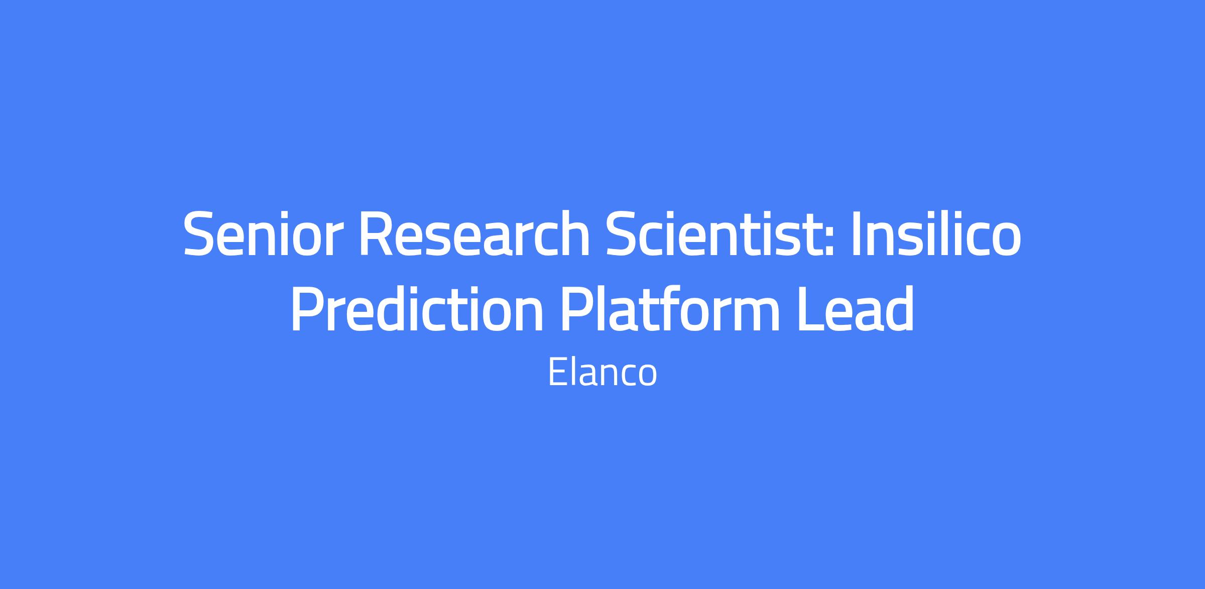 Senior Research Scientist: Insilico Prediction Platform Lead who will drive the strategy, development, and integration of automation, AI, and ML–powered prediction models to accelerate early-stage drug discovery across Elanco’s research portfolio. The role shapes the platform vision, partners with scientific and technical teams, and enables computational approaches for both small and large molecule innovation. This position builds scalable, data-driven, and automated research capabilities within pharmaceutical R&D.