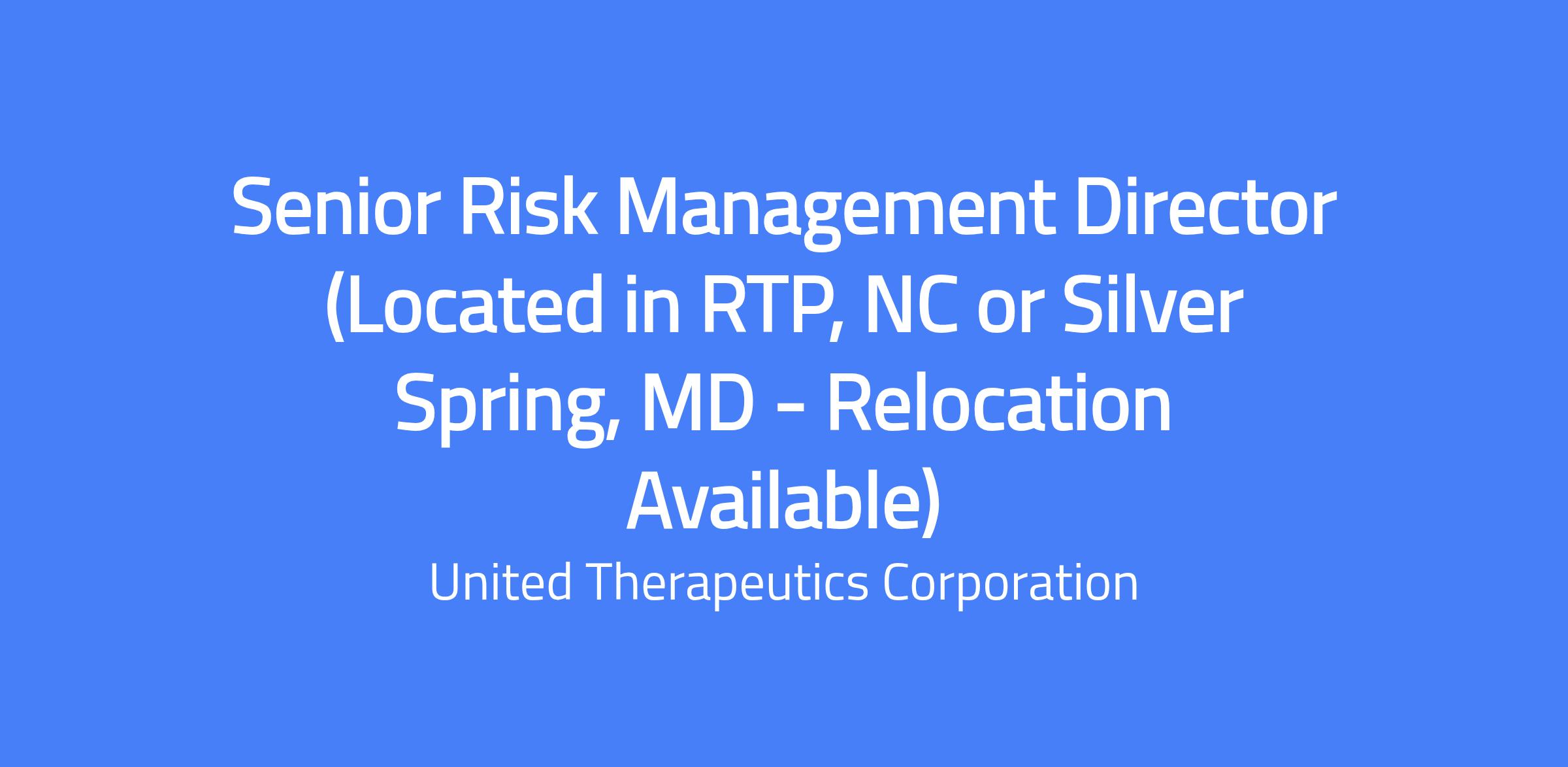 The Senior Risk Management Director leads the vision and strategic direction for the company's risk management function, ensuring it supports and advances organizational objectives. The role drives execution across enterprise risk management, corporate insurance, and organizational resiliency to reduce exposure, strengthen preparedness, and enable proactive risk-informed planning and decision-making. Location options include RTP, NC or Silver Spring, MD with relocation available.