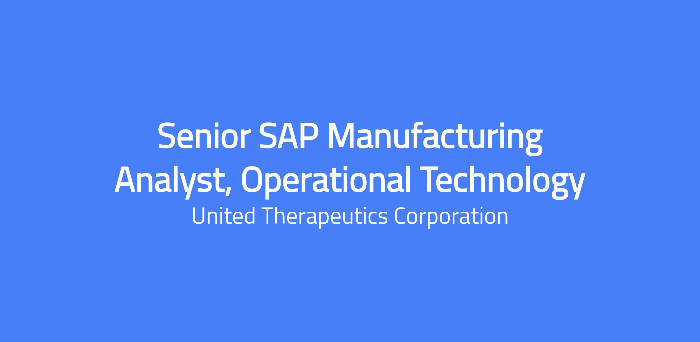 Senior SAP Manufacturing Analyst, Operational Technology responsible for managing the implementation, ongoing maintenance, and support of SAP modules across Manufacturing, Inventory, Warehouse, and Distribution. You will provide technical expertise to configure, develop, and support SAP Manufacturing systems and collaborate with cross-functional teams to meet business needs.