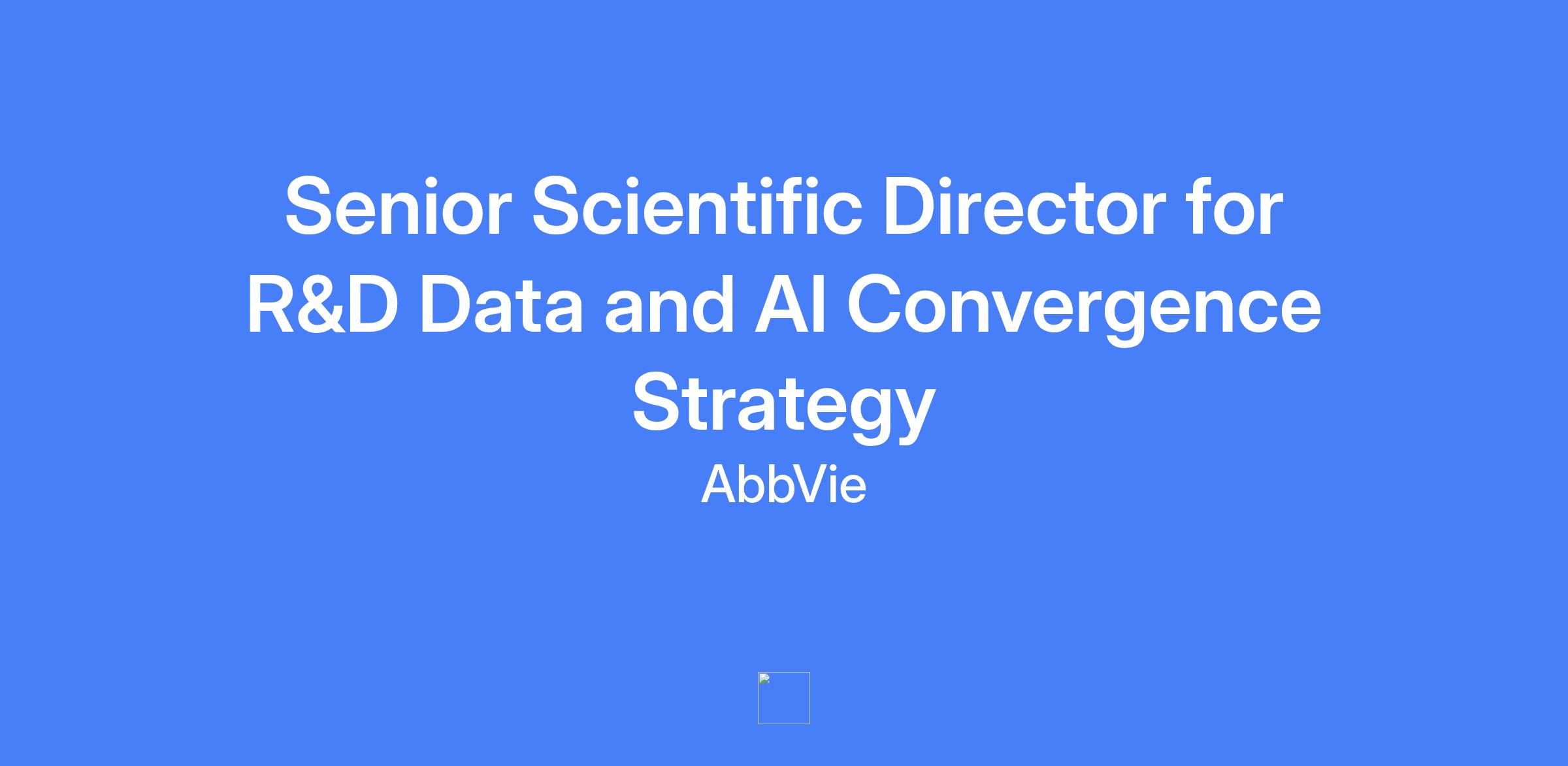 Senior Scientific Director for R&D Data and AI Convergence Strategy. Lead scientific and strategic objectives for the Convergence organization, driving analysis of large cross-functional datasets to advance AbbVie’s R&D goals and establish AbbVie as an industry-leading knowledge-based biopharmaceutical company.