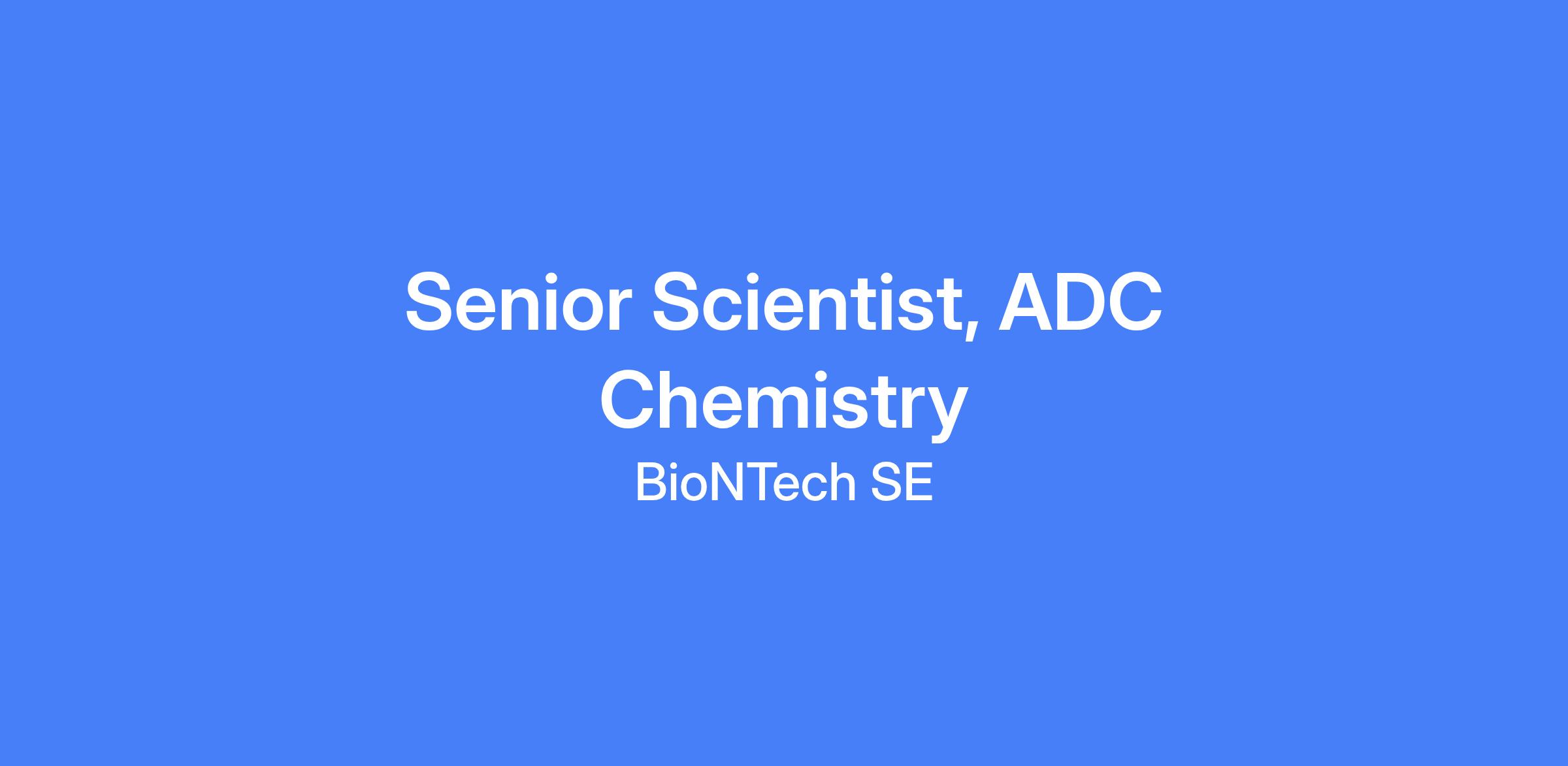 Senior Scientist, ADC Chemistry in the ADC Innovation Unit. The role involves designing and synthesizing payloads, linkers, and linker-payloads for Antibody-Drug Conjugates (ADCs), with potential involvement in conjugation to antibodies. Collaboration with biology, pharmacology, and other disciplines, plus preparing presentations with progress updates and proposals for linker-payload improvements.