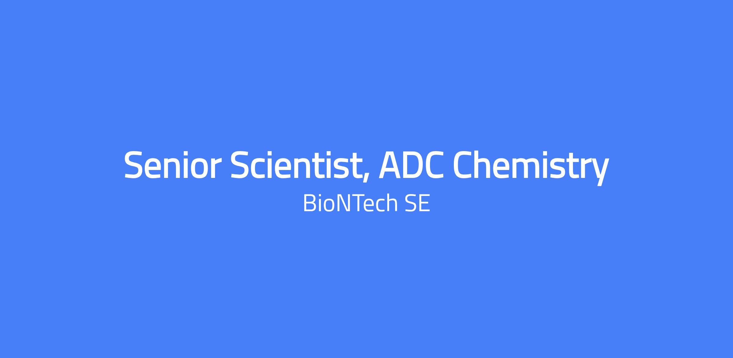 Senior Scientist, ADC Chemistry in the ADC Innovation Unit. The role involves designing and synthesizing payloads, linkers, and linker-payloads for Antibody-Drug Conjugates (ADCs), with potential involvement in conjugation to antibodies. Collaboration with biology, pharmacology, and other disciplines, plus preparing presentations with progress updates and proposals for linker-payload improvements.