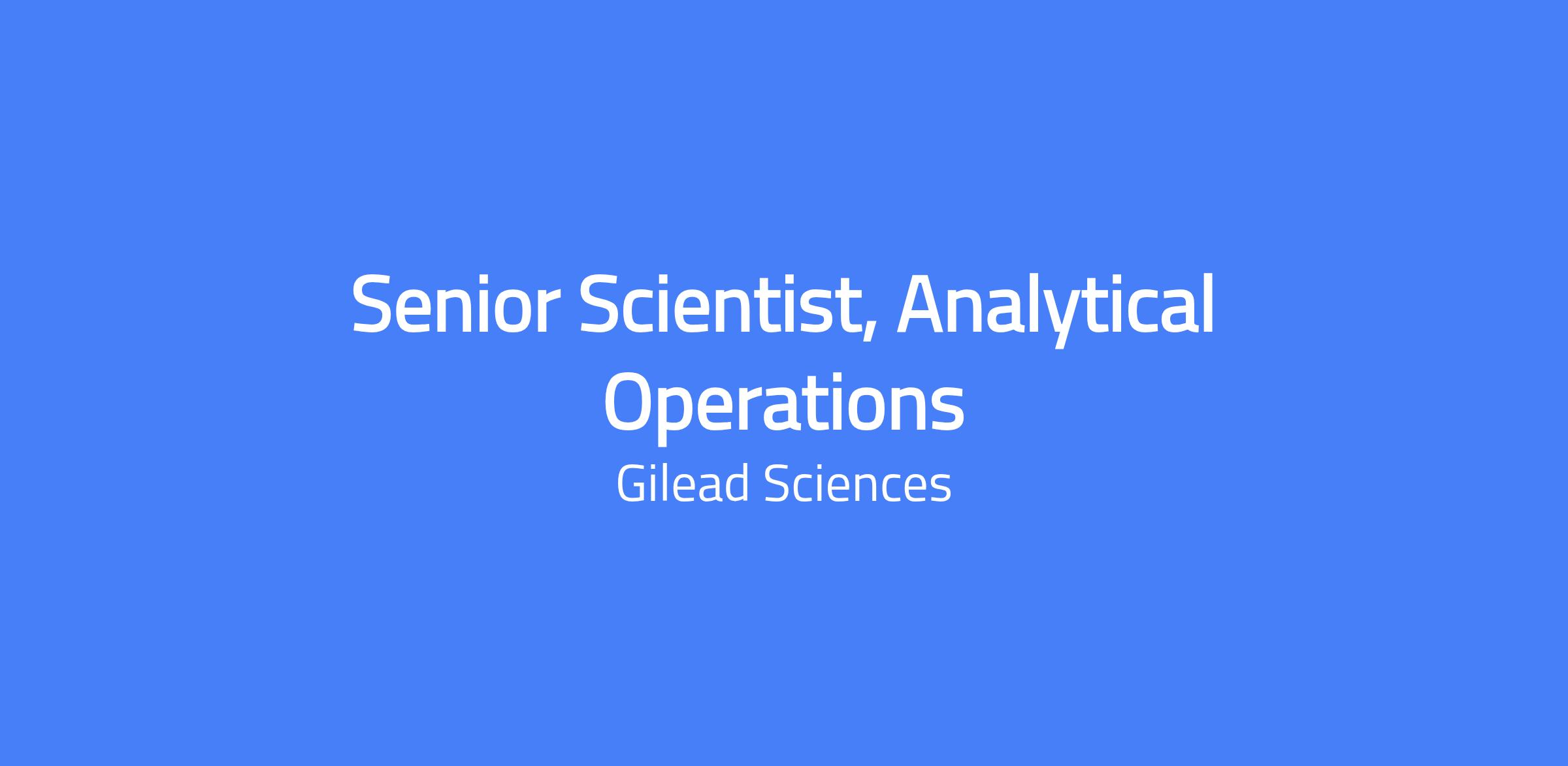 Senior Scientist, Analytical Operations at Gilead leads rapid high-throughput analytical testing programs to support process development and product characterization. The role involves implementing rapid testing capabilities, maintaining alignment across testing sites, driving automation and novel technologies, and mentoring junior scientists in a matrixed environment. The position requires leadership, regulatory awareness, and the ability to troubleshoot complex assays to accelerate throughput and data quality.