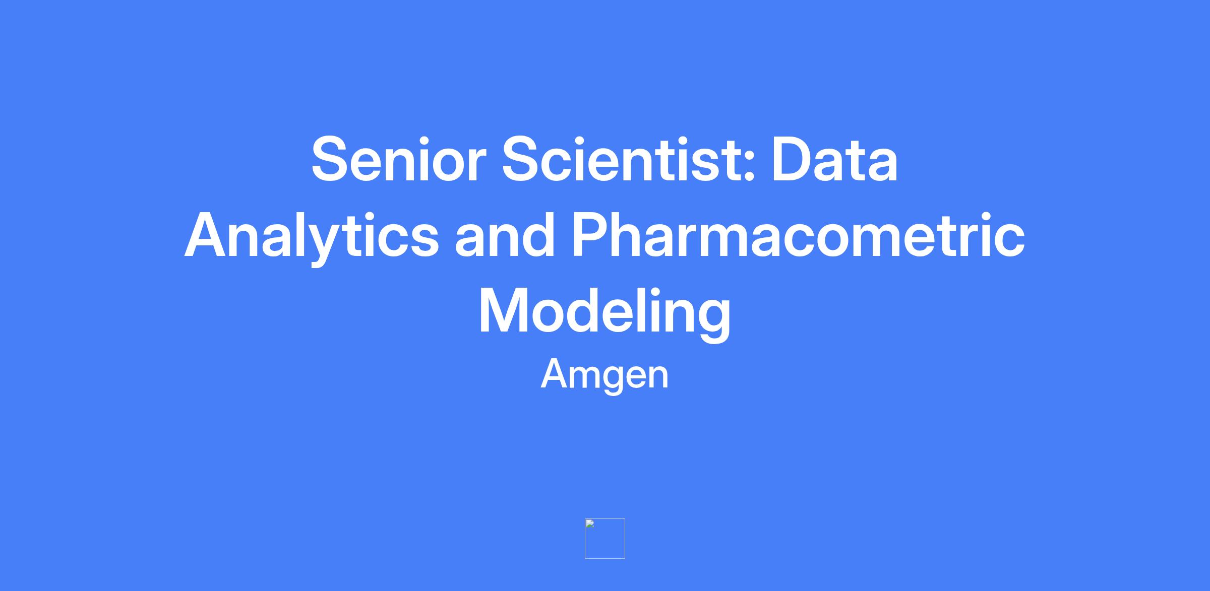 Senior Scientist - Data Analytics and Pharmacometric Modeling