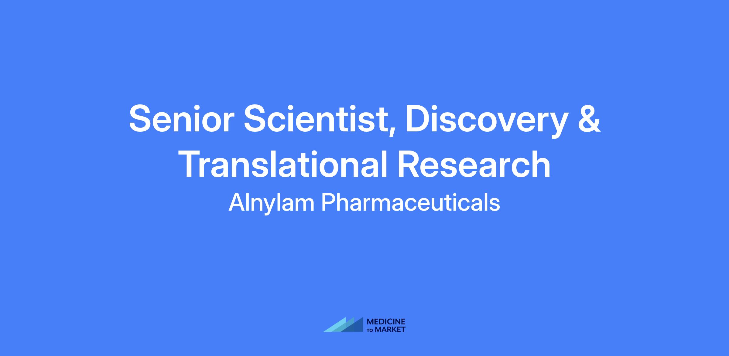 Senior Scientist, Discovery & Translational Research at Alnylam. This role focuses on skeletal muscle or cardiovascular research within the Discovery and Translational Research team, spanning from discovery through clinical development, including preclinical disease models and leading Development Candidate discovery efforts. Onsite in Cambridge, MA.