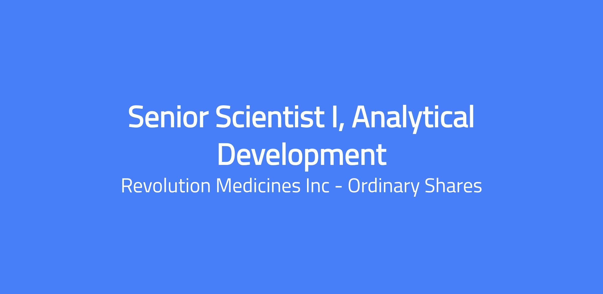 Playing a critical role within CMC function, as Senior Scientist I, Analytical Development the position will support the manufacturing and control of drug substances and drug products during clinical development. The position will provide analytical support to API process research and development, formulation development, and assist in regulatory filings in support of Revolution Medicines pipeline compound development and clinical programs.