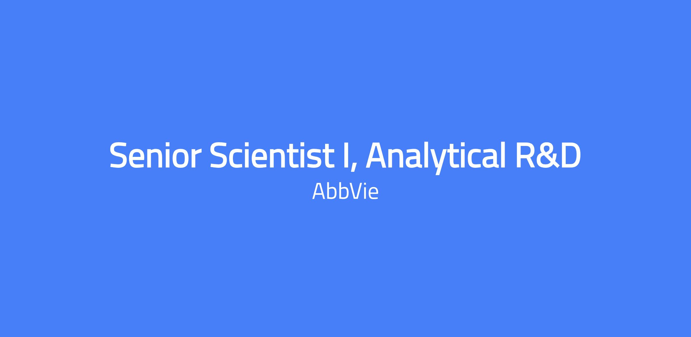 Senior Scientist I, Analytical R&D