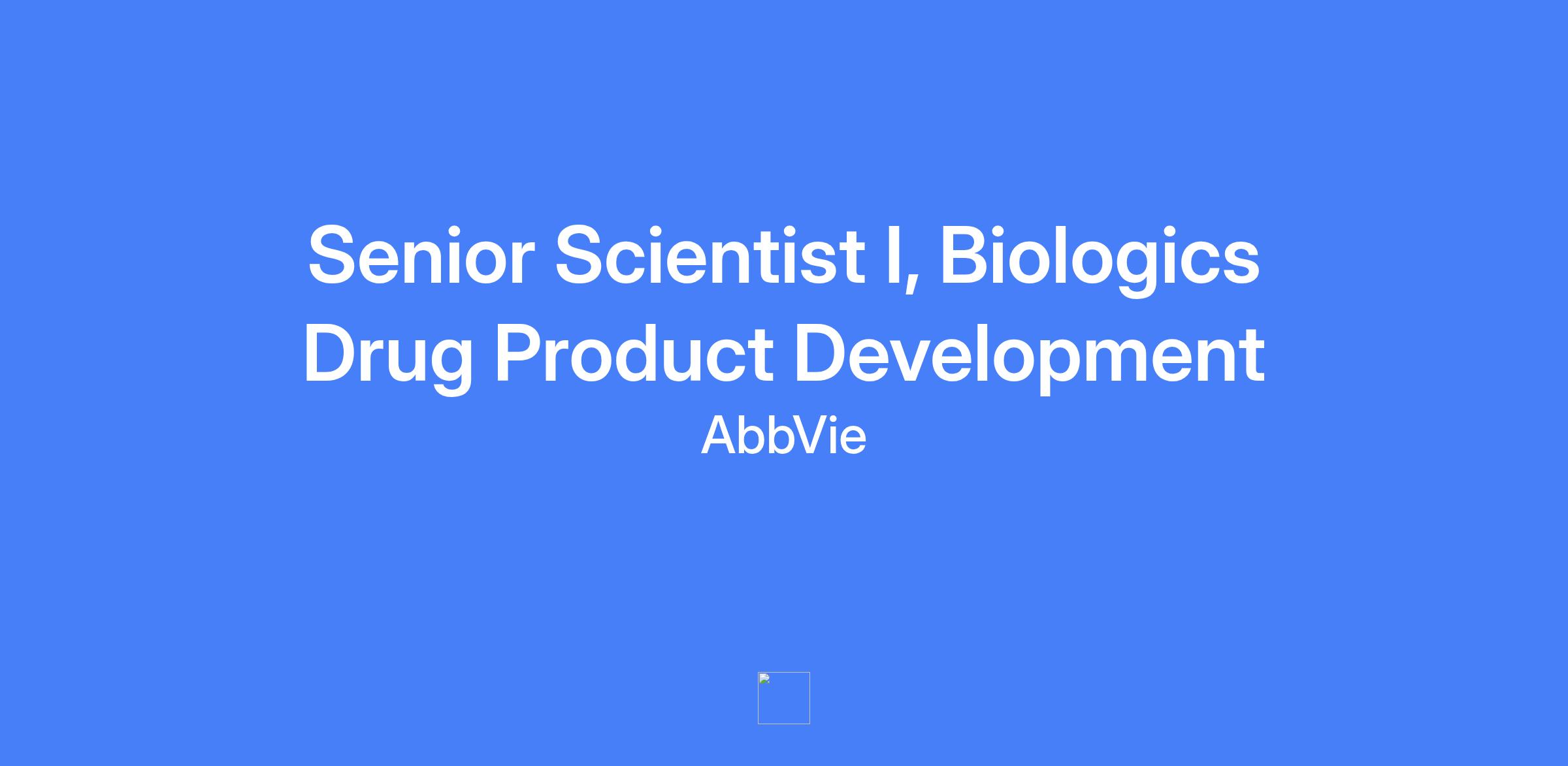Senior Scientist I, Biologics Drug Product Development, located in North Chicago, IL. The role focuses on biologics formulation and process development, and characterization, contributing to product development and CMC teams with cross-functional collaboration.