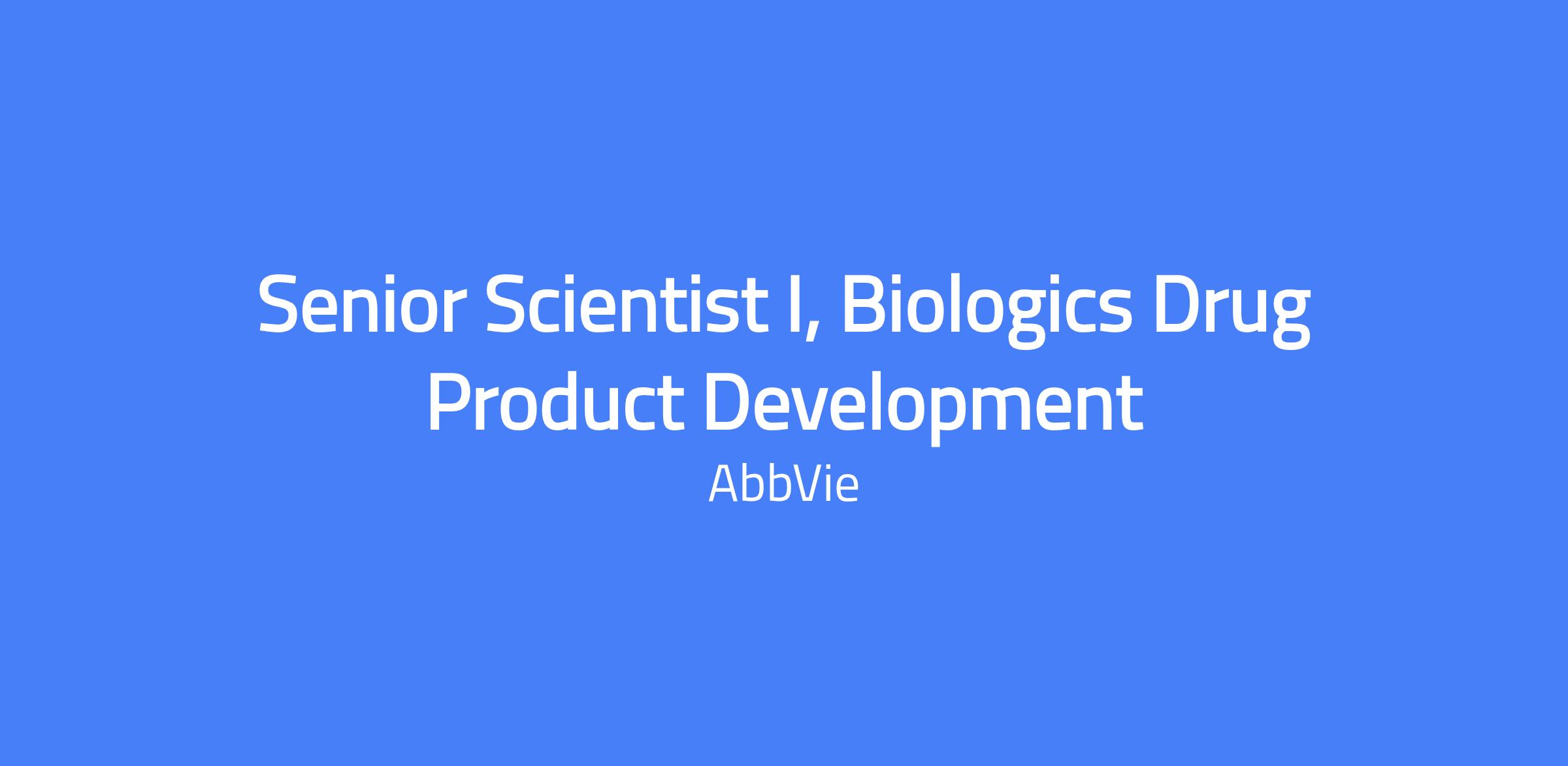 Senior Scientist I, Biologics Drug Product Development, located in North Chicago, IL. We are seeking an accomplished scientist with a proven track record in biologics formulation and process development, and characterization to join the Bio DPD team and collaborate with discovery research, analytical R&D, bioprocess development, and other stakeholders.
