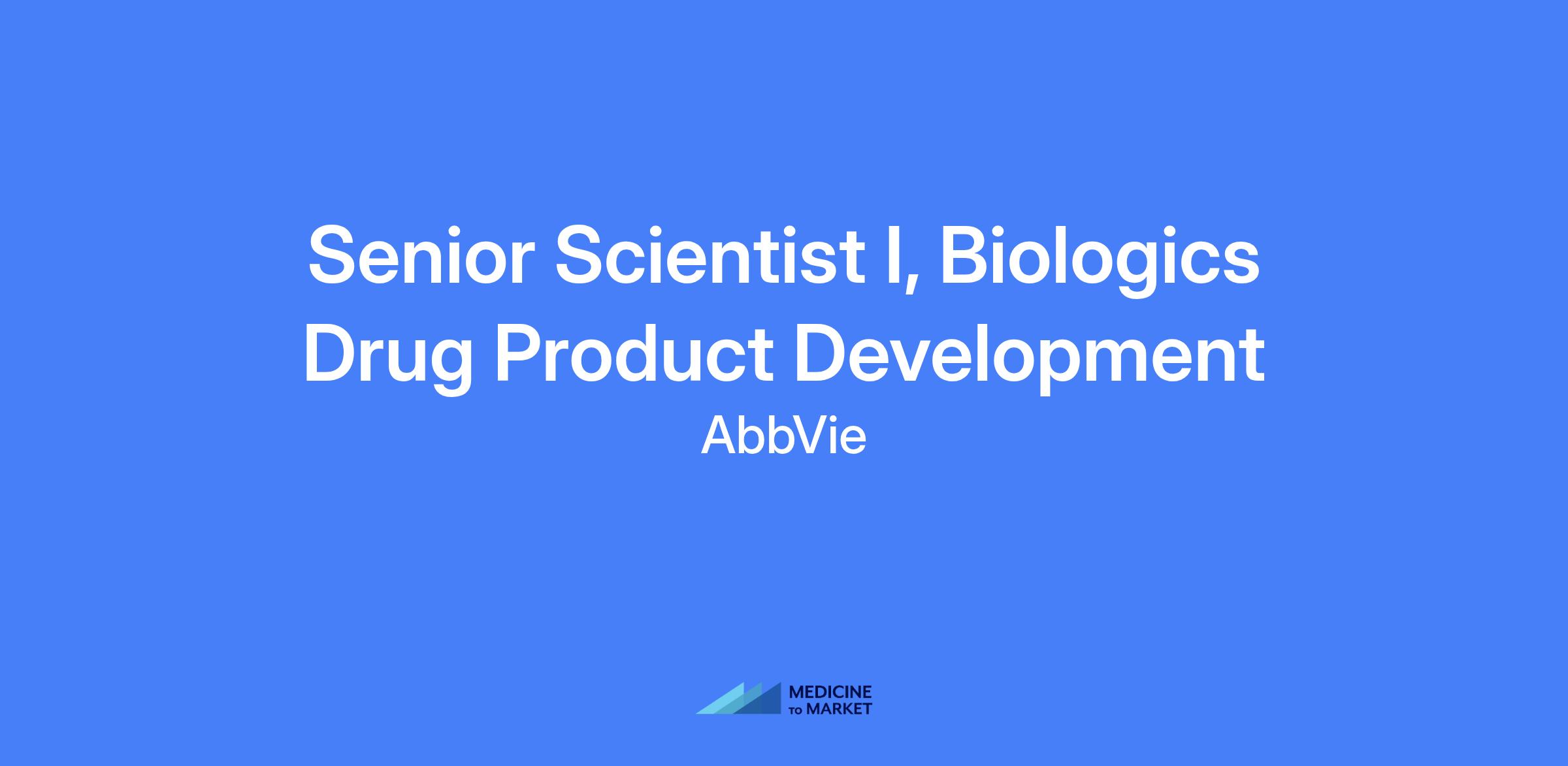 Senior Scientist I, Biologics Drug Product Development, located in North Chicago, IL. The role focuses on biologics formulation and process development, and characterization, contributing to product development and CMC teams with cross-functional collaboration.