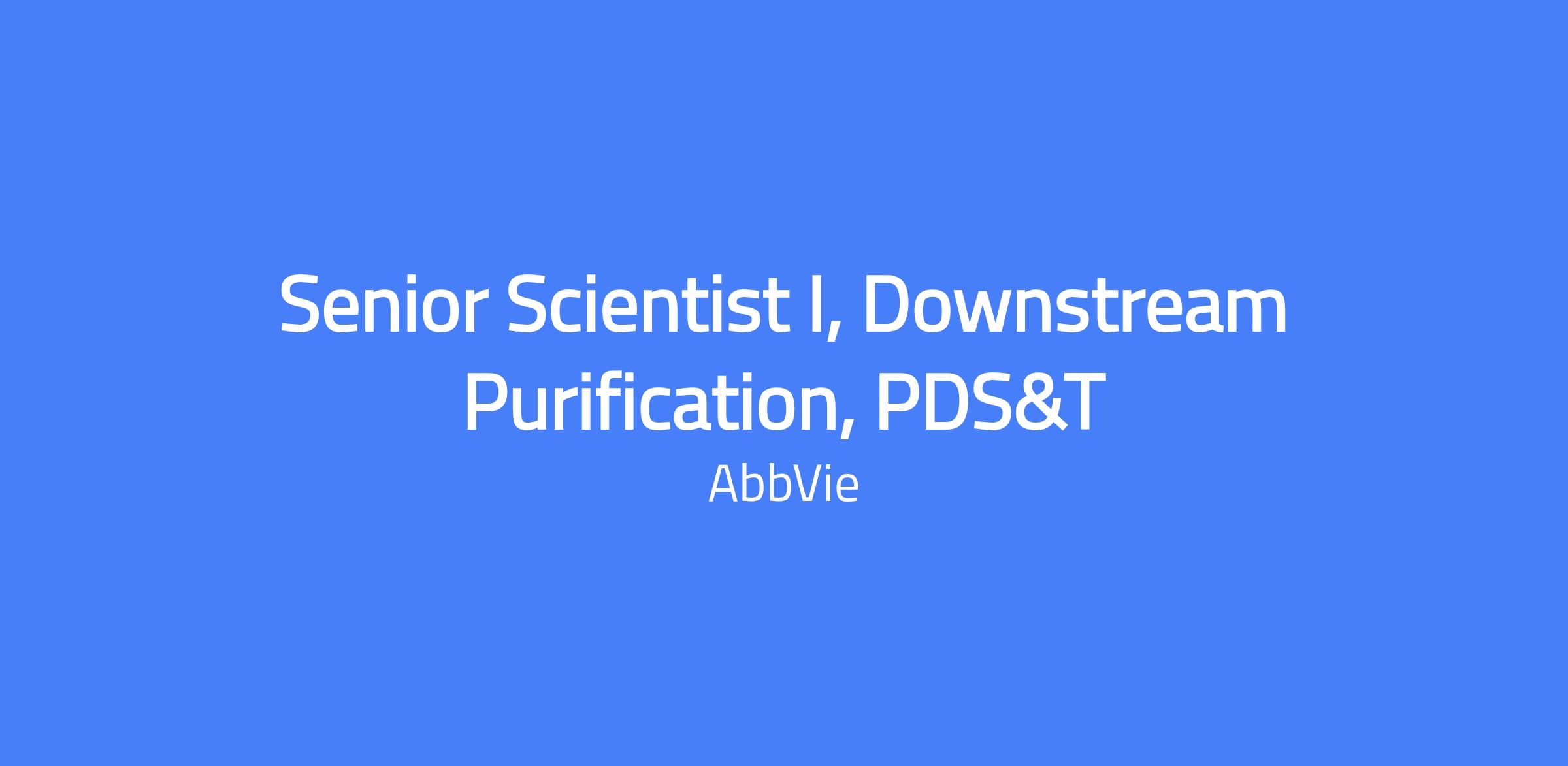 The Senior Scientist I, Downstream Purification, PDS&T is based in Irvine, CA. The role applies scientific and engineering principles, modeling and statistical process design/analysis to develop robust manufacturing processes hands-on. The candidate should have in-depth knowledge and hands-on experience in bioprocess development, scale-down model qualification, protein characterization, and related areas, with excellent communication skills for cross-functional collaboration.