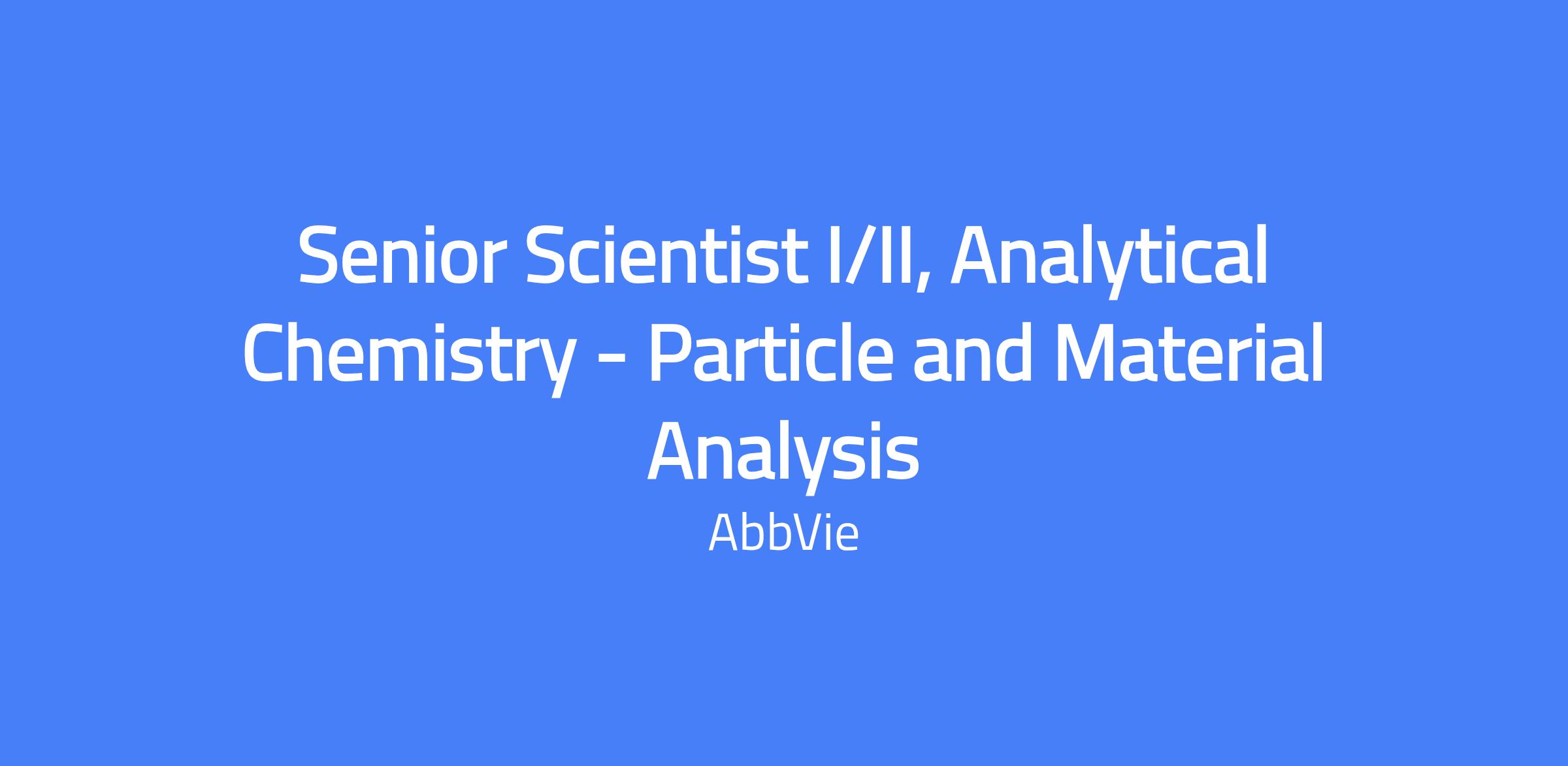 Senior Scientist I/II in Analytical Chemistry focusing on Particle and Material Analysis within the Physical Analytical Chemistry group of the SPC center. Responsible for applying physical analytical technologies to support drug substance and drug product development, including particle characterization, solid form development, microscopy and imaging, and related techniques. You will design and execute studies, develop test methods when appropriate, and translate results into actionable insights for development programs and regulatory submissions.