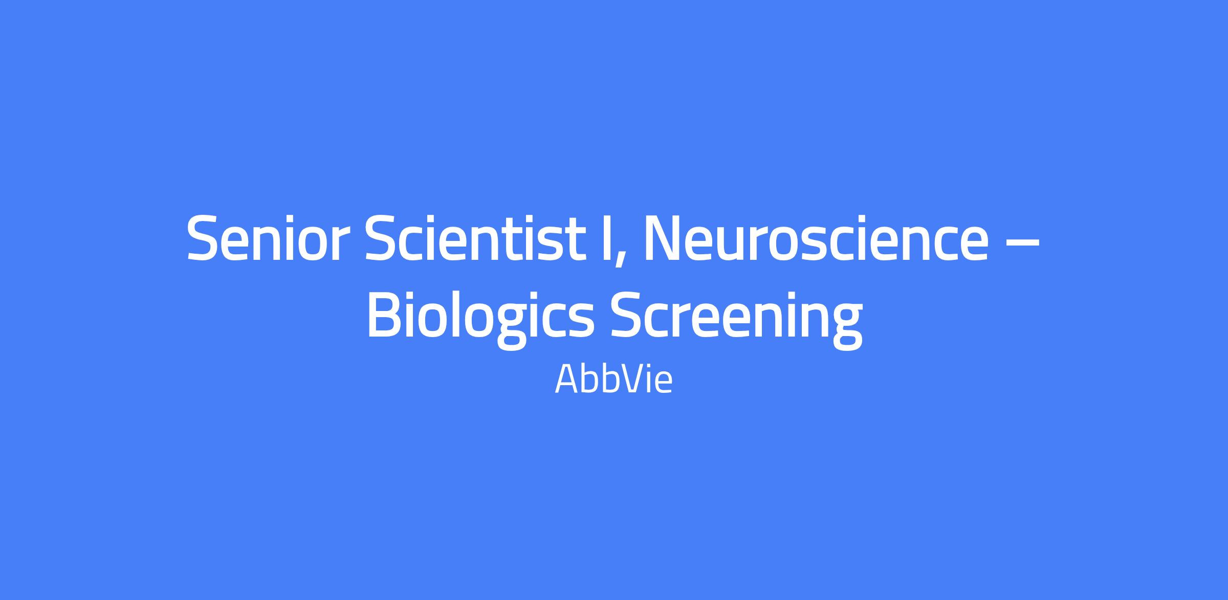 Senior Scientist I β Neuroscience Discovery (Movement Disorders)