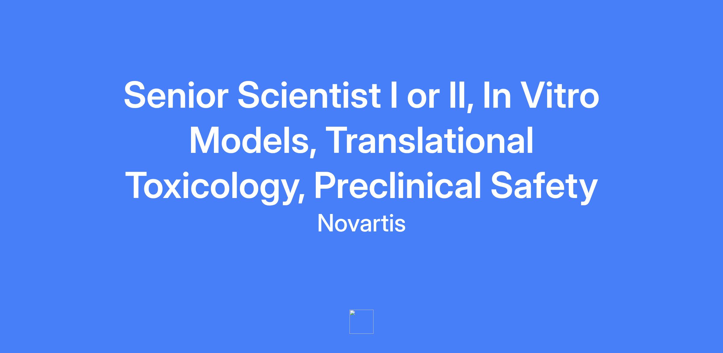 Senior Scientist I or II, In Vitro Models, Translational Toxicology, Preclinical Safety based in Cambridge, MA. Develop and apply in vitro models for safety assessment of novel drugs within Preclinical Safety/Translational Medicine, contribute to cross-functional translational toxicology efforts, and communicate results to relevant teams.