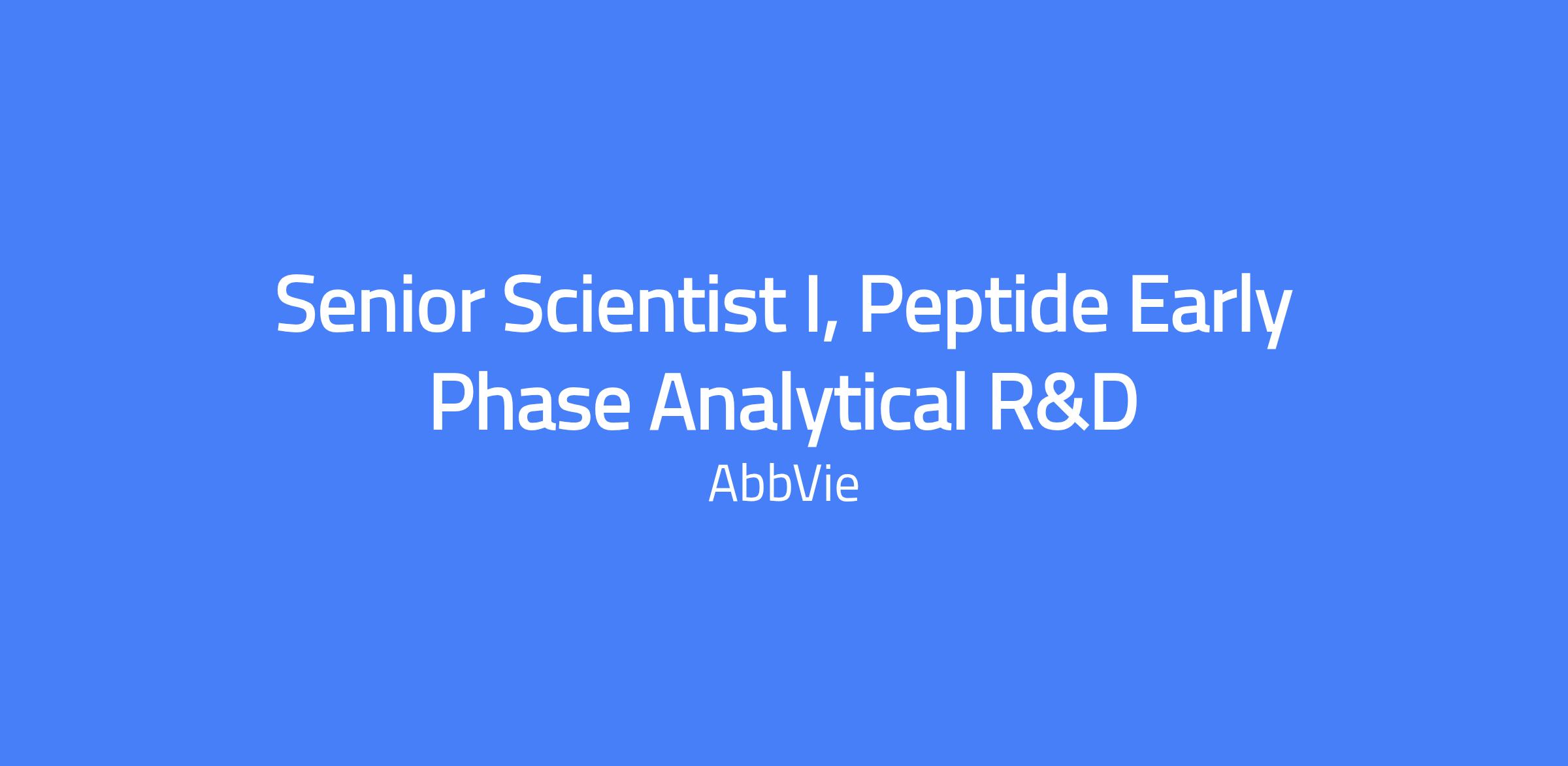 The Senior Scientist I will implement and execute novel scientific research and development, independently develop and optimize new methods to generate reliable data in a timely manner, and demonstrate broad technical expertise. They will support early phase development of New Chemical Entities (NCEs), particularly synthetic peptides, in both the preclinical and clinical development spaces, and collaborate with the global Analytical R&D organization and cross-functional partners. This role focuses on transitioning NCEs from Discovery into Development Sciences and will independently serve as an Analytical Research and Development representative in a highly cross-functional team. Candidates should be comfortable discussing organic chemistry topics relevant to analytical chemistry, and experience with peptide development is required; chromatographic analysis (HPLC/GC) and Mass Spectrometry are highly preferred.