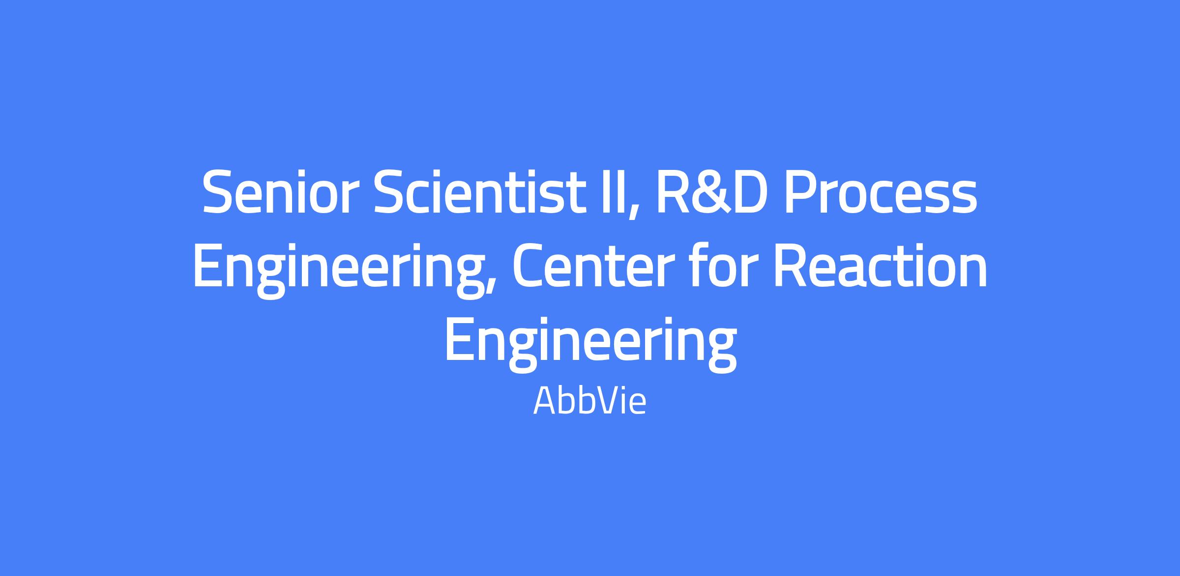 Senior Scientist II, R&D Process Engineering, Center for Reaction Engineering. Lead chemical process research and development across the pipeline, focusing on reaction engineering and process development. Develop detailed kinetic models and guide scale-up and scale-down experiments; collaborate with cross-functional teams to advance capabilities such as flow chemistry, photochemistry, and electrochemistry to meet project goals.