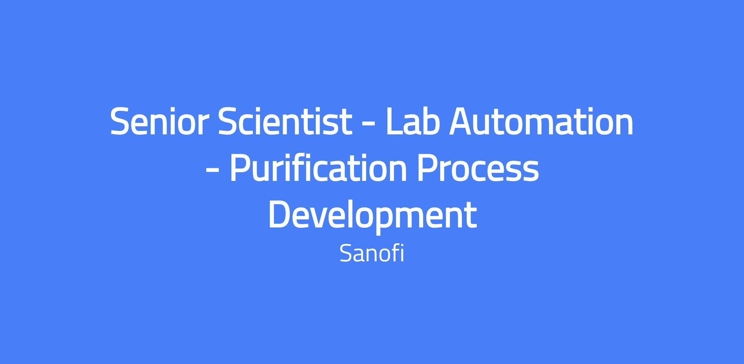 Senior Scientist specializing in laboratory automation for Purification Process Development. Lead the design, implementation, and optimization of automation systems; integrate robotics and automated liquid handling into purification workflows; develop automated data acquisition and analysis capabilities; mentor junior scientists and collaborate with cross-functional teams to advance pipeline projects.