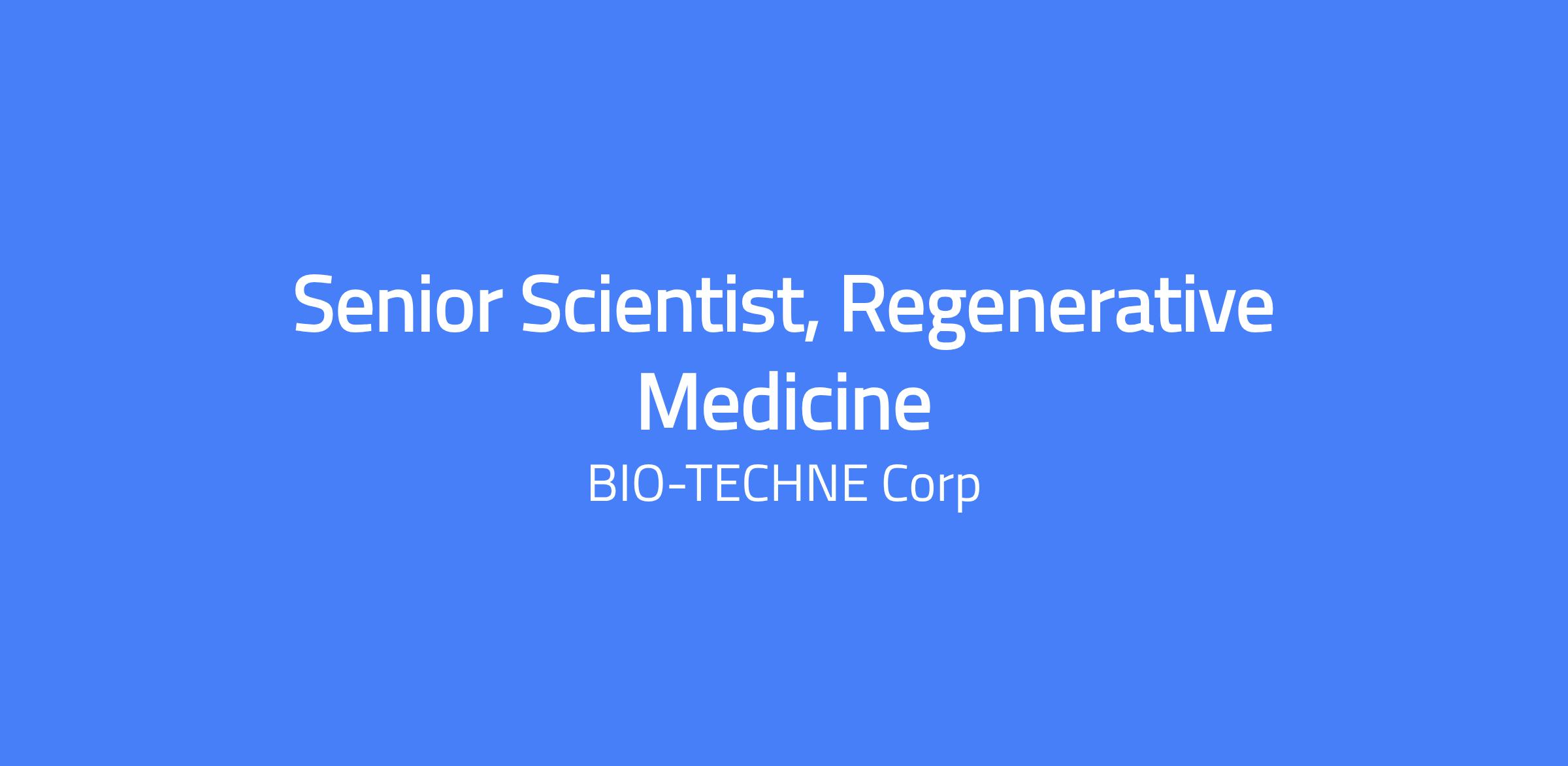 By joining Bio-Techne, youâll join a company with a powerful and positive purpose of enabling cutting-edge research in Life Sciences and Clinical Diagnostics. Bio-Techne, and all of its brands, provides tools for researchers to further treat and prevent disease worldwide. Pay Range: $87,600.00 - $144,000.00 Senior Scientist, Regenerative Medicine â Customer Applications Position Summary: The Regenerative Medicine â Customer Applications Senior Scientist is a key member of a dynamic team focused on developing innovative products and applications for regenerative medicine and organoid research. We are seeking a highly skilled and experienced scientist with demonstrated expertise in diverse organoid workflows, disease modeling, and driving innovation for stem cell-derived therapies. The successful candidate will play a critical role in developing and improving human pluripotent stem cell (hPSC)-based differentiation and characterization techniques. As a part of this role, youâll help drive significant progress in regenerative and personalized medicines by joining a collaborative team of innovators working to create impactful solutions for drug discovery and clinical trials. This position offers a unique opportunity to utilize the breadth of Bio-Techneâs product portfolio and work closely with various teams to maximize the impact of our reagent solutions. Key responsibilities include developing products and applications for expansion, differentiation, and characterization of stem cell derived organoid models. Experience in culturing stem cells (e.g. iPSC, ESC, MSC or adult stem cells) and in 3D culture systems, including spheroid, organoids - is required. Key Responsibilities: Identify and develop products, workflows, and key culture optimizations (i.e. expansion, differentiation, and characterization) for stem cell-based therapy and organoid research and application. Develop and optimize robust and reproducible cell differentiation protocols, analytical methods, and other processes needed to convert human induced pluripotent stem cells (iPSCs) into cellular products and therapeutics. Lead core teams and collaborate with cross-functional teams to formulate cell differentiation reagents and protocols for different iPSC-derived cell types. Serve as a subject matter expert in organoids, supporting new product initiatives including organoid model development, disease modeling applications, drug screening platforms, and protocol scale-up. Develop cell-based, biochemical, and/or molecular assays to characterize the identity and physiology of stem cell-derived differentiated cells and organoids. Plan and perform experiments, analyze data, and generate presentations to inform project progress to wider department and leadership. Provide substantial, high-quality contributions to projects by working independently, communicating effectively within cross-functional team and leverage available expertise and support across the organization. Contribute to corporate scientific activities/roadmaps/strategy. Develop scientific content including conference presentations, publications, application notes, webinars and other Sales and Marketing efforts to support and promote Bio-Techneâs stem cell, organoids, and regenerative medicine product offerings and services. Apply scientific methods and process design principles to improve development, manufacturing and quality control processes. Author documentation including standard operating procedures (including Manufacturing and QC) for RUO and GMP products, design verification and validation procedures, and technical reports to support lab operation, development initiatives, and product investigations. Stay up to date with the latest scientific developments and market offerings in the fields of stem cell, organoids, and regenerative medicine. Provide subject matter expertise, mentorship, and leadership to other scientists and research associates across the department and the wider Bio-Techne team. Qualifications & Experience: Ph.D. in Biology, Biomedical Engineering, Chemical Engineering, or a related field, with a minimum of 2+ years of industry experience in cell and gene therapy, regenerative medicine, or biomanufacturing. The ideal candidate has translational research experience applying organoid models to disease biology, drug discovery, and/or therapeutic screening. Proven expertise in process development for stem cell-based therapy research, including scaling workflows from discovery to GMP-compliant manufacturing. Hands-on experience with adherent cell culture systems and advanced bioreactor platforms for large-scale cell expansion and differentiation. Significant technical expertise/scientific knowledge of autologous or allogeneic cell therapies or differentiation pathways. Expertise in fluorescence microscopy and standard cell characterization assays (e.g. RT-PCR, flow cytometry, ELISA, and ICC) required. High throughput assays or high content imaging experience strongly preferred. Experience with gene editing technologies (e.g. CRISPR) and biomaterials for advanced cell culture a plus. Prior demonstrated experience developing and validating/verifying product workflows under design control using a requirements-driven, risk-based approach within the biotech industry or clinical laboratory. Strong background in developing and optimizing differentiation protocols for iPSCs or other pluripotent stem cells, with an emphasis on clinical and manufacturing applications. Knowledge, Skills, and Abilities: Self-motivated, action oriented, highly collaborative and team focused, results driven with high levels of professionalism, responsibility and positive attitude. A strong track record of independence, scientific productivity, and creative problem-solving. Knowledge of regulatory and quality standards for GMP production and experience developing workflows under design control and risk-based approaches. Technical proficiency with standard cell characterization
