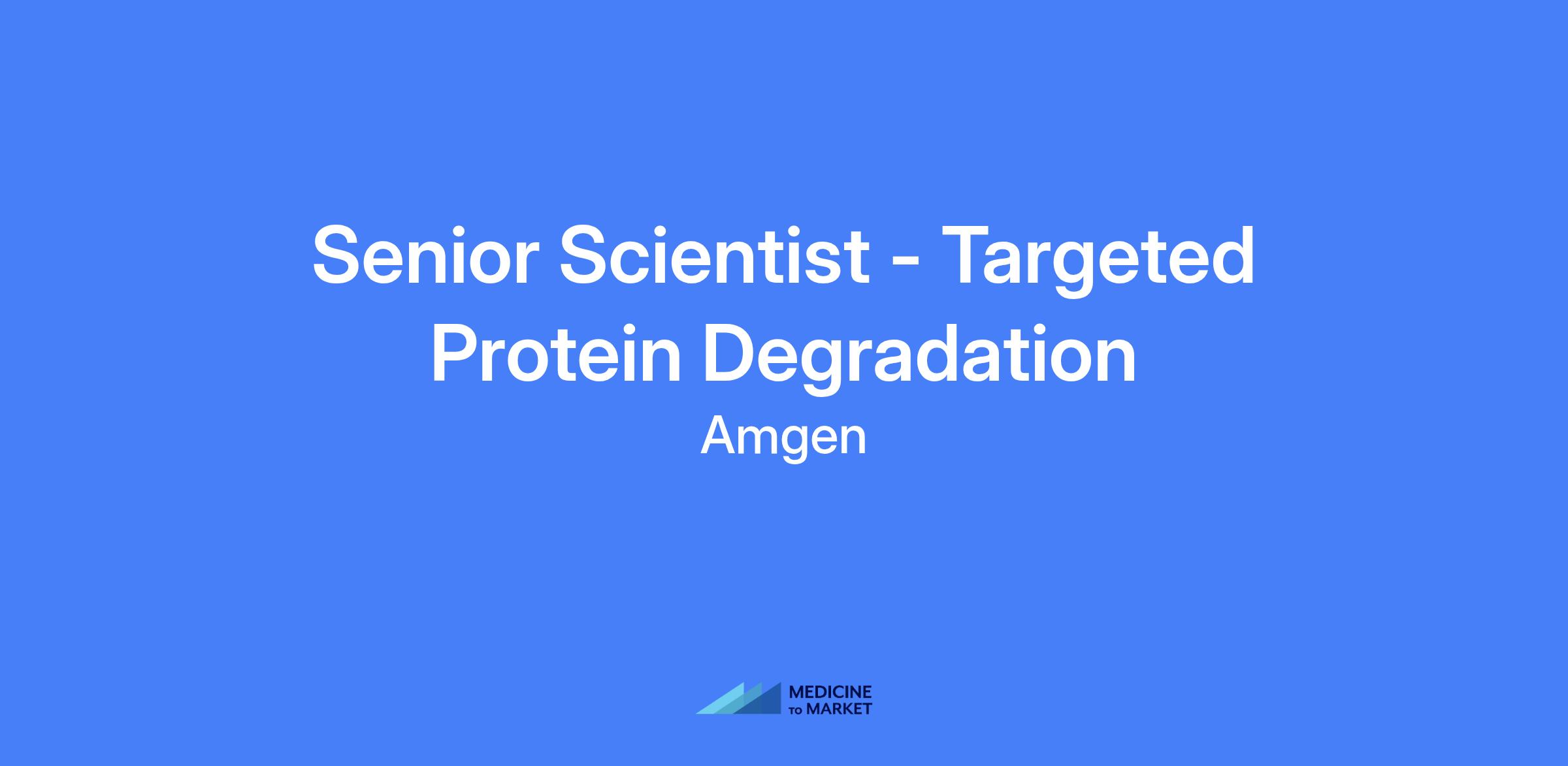 Senior Scientist - Targeted Protein Degradation. Lead discovery efforts in molecular glue degraders and establish phenotypic-based screening platforms within Amgen's Induced Proximity Platform (IPP) to advance targeted protein degradation technologies for high-value targets in oncology, inflammation, and related areas.