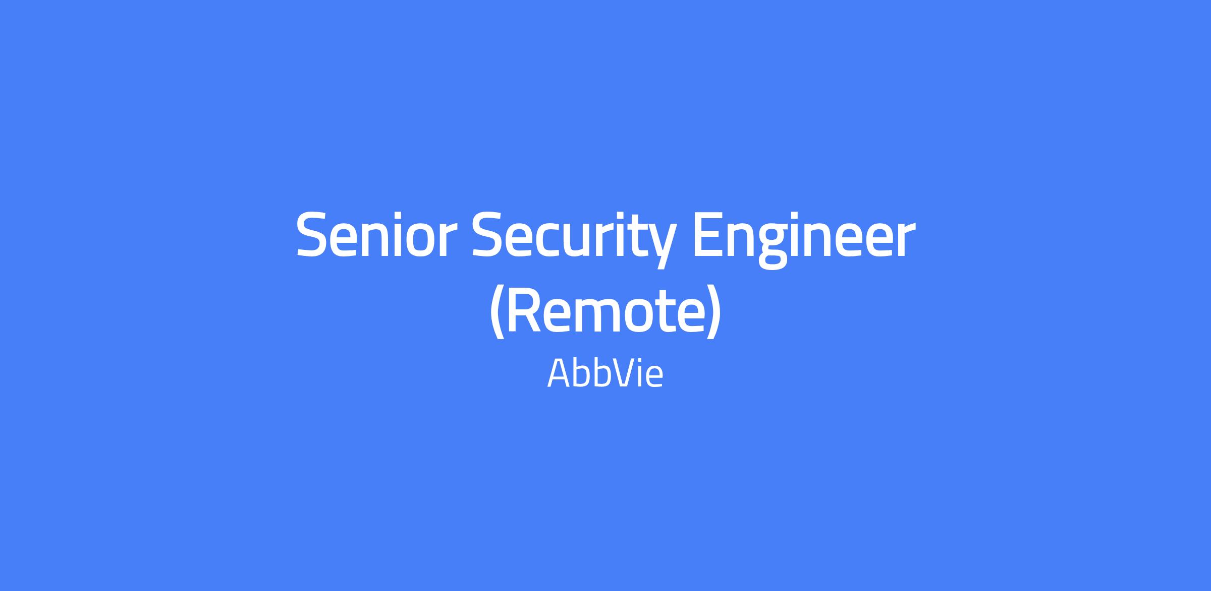 Senior Security Engineer in AbbVie Business Technology Solutions, focusing on shaping and guiding the organization's security strategy, architecture, and practices with an emphasis on cyber posture and hygiene. This position can be based virtually anywhere in the U.S.