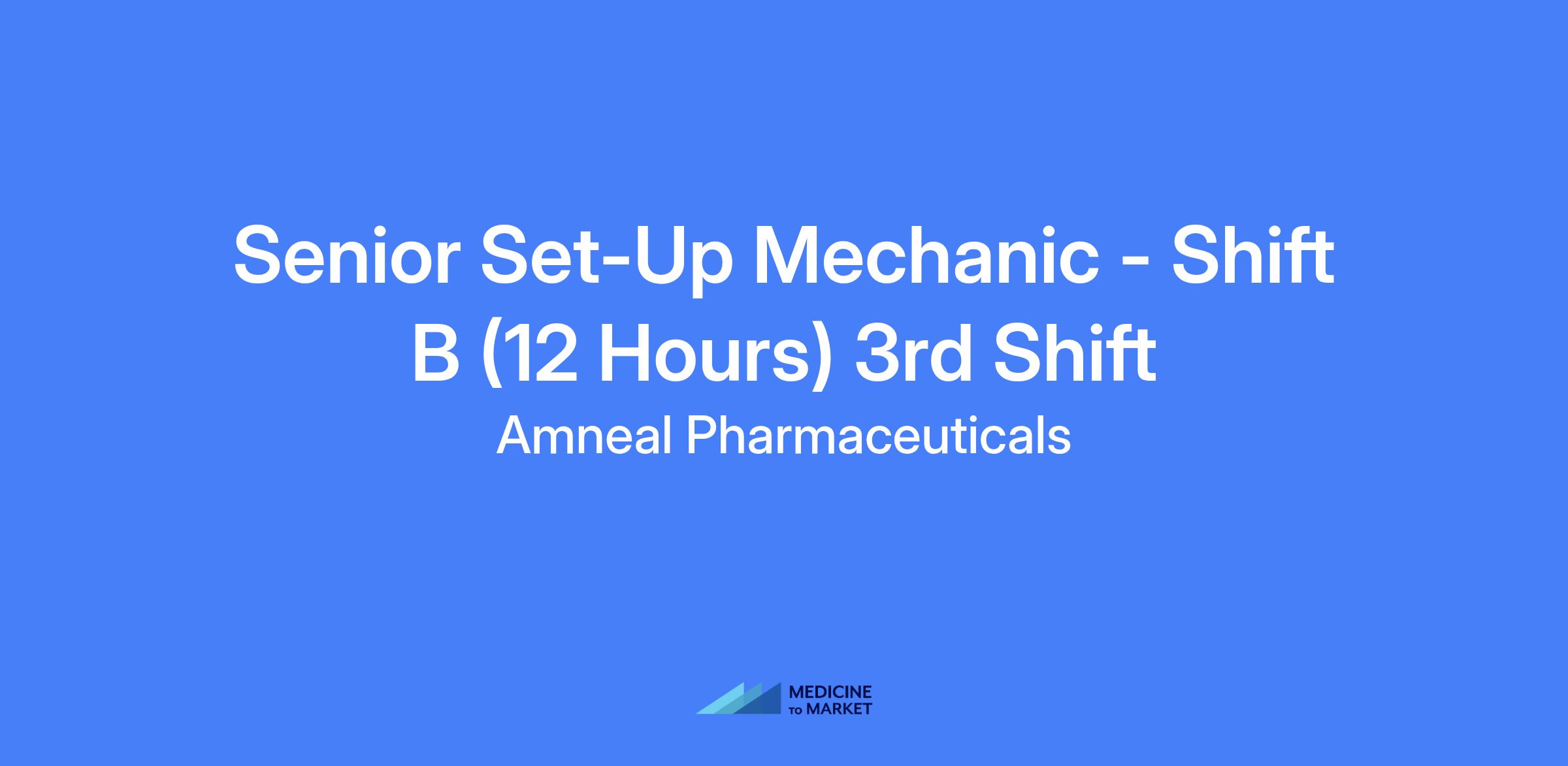 Senior Set-Up Mechanic - Shift B (12 Hours) 3rd Shift. Set Up mechanic II serves as the subject matter expert for packaging resources, responsible for set-up, changeover, troubleshooting, and efficient operation of packaging equipment while adhering to safety protocols. Responsible for maintenance, repair, and reliability of packaging and filling machinery. Works a 12-hour rotating shift from 6:00 PM to 6:30 AM.