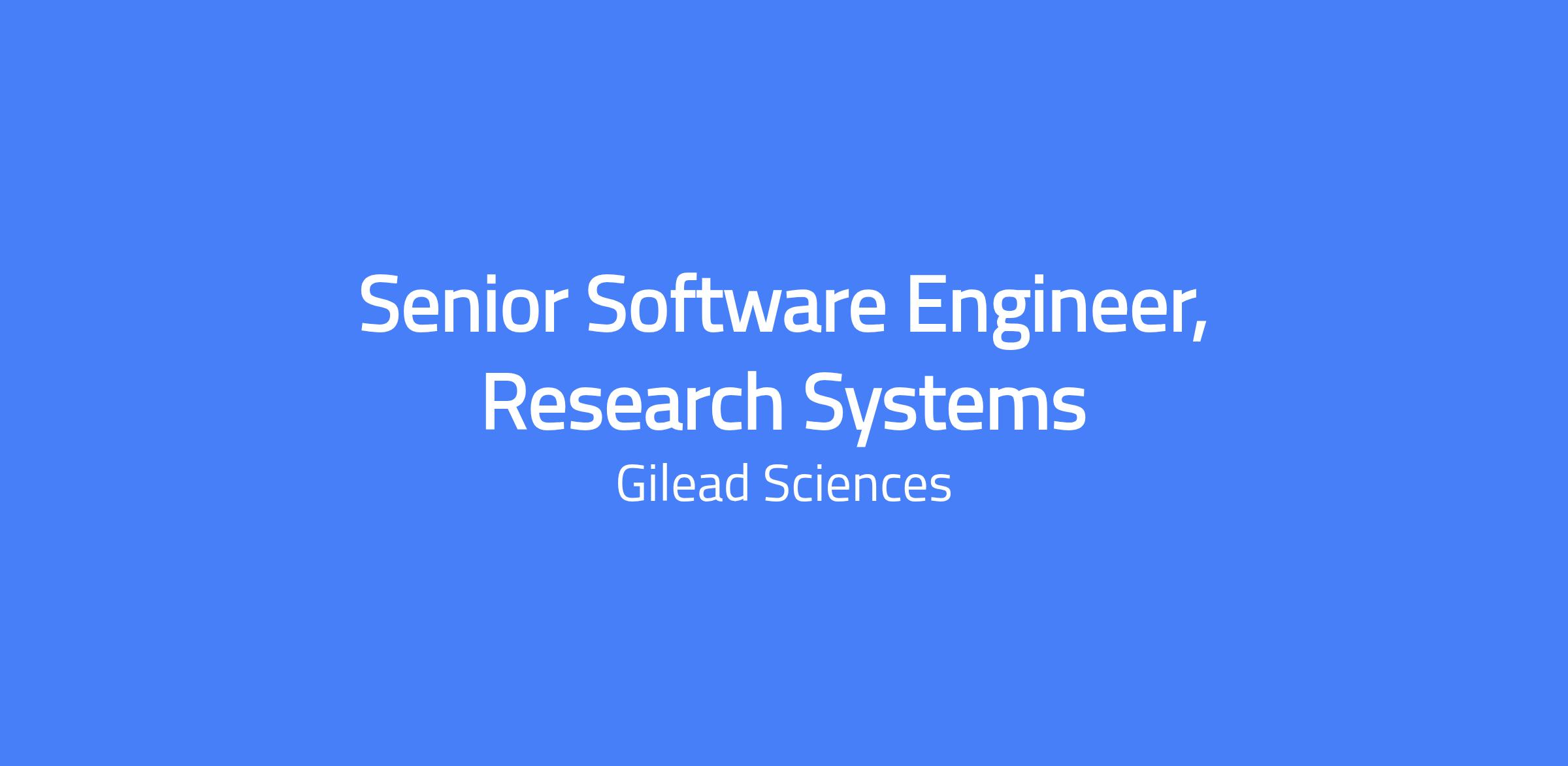 Senior Software Engineer, Research Systems. Gilead Sciences Research Informatics is expanding, and we are looking for a talented coder/programmer to design, develop, and support applications that enable data workflows, logistics, scientific processes, and advanced analytics. In this role, youโll work at the intersection of software engineering and scientific innovation, creating tools that directly support discovery and decision-making.