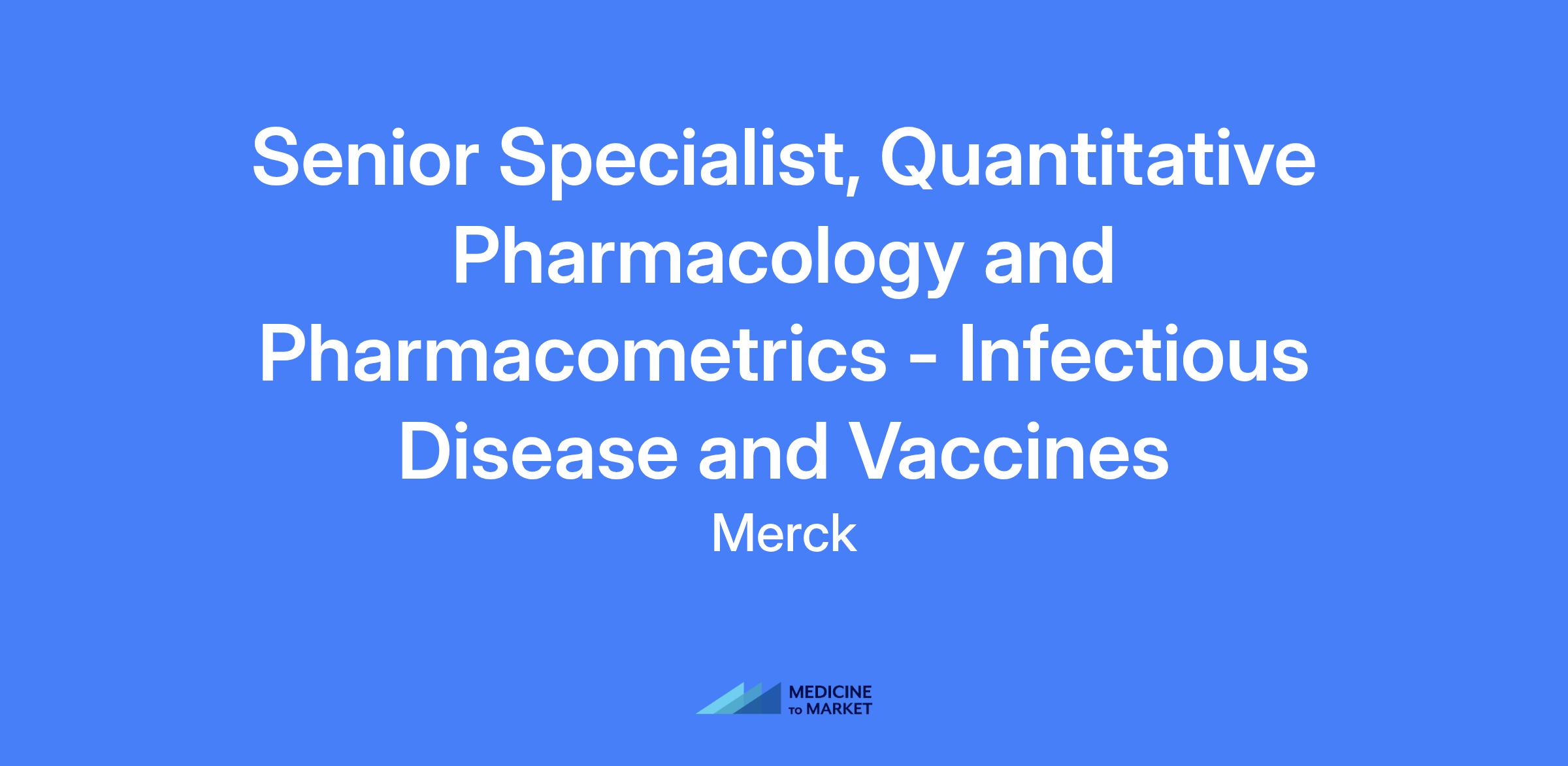 Senior Specialists in the Infectious Disease and Vaccines group in the department of Quantitative Pharmacology and Pharmacometrics (QP2) apply quantitative approaches to enable drug-development decision-making from drug discovery through approval. The role involves collaborating with multidisciplinary teams and developing expertise in pharmacometrics and related areas to support drug and vaccine development.