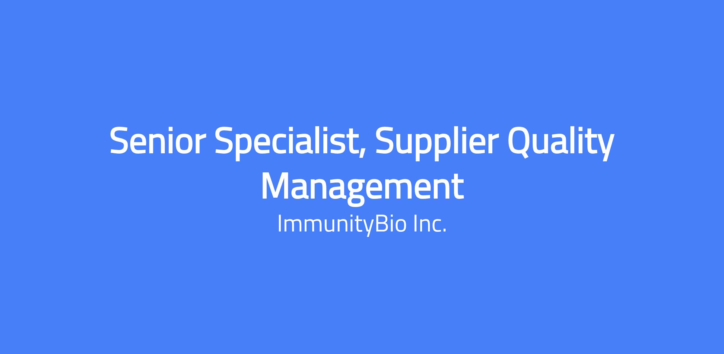 Company Overview ImmunityBio, Inc. (NASDAQ: IBRX) is a commercial-stage biotechnology company developing cell and immunotherapy products that are designed to help strengthen each patient’s natural immune system, potentially enabling it to outsmart the disease and eliminate cancerous or infected cells. We envision a day when we no longer fear cancer, but can conquer it, thanks to the biological wonder that is the human immune system. Our scientists are working to develop novel therapies that harness that inherent power by amplifying both branches of the immune system, attacking cancerous or infected cells today while building immunological memory for tomorrow. The goal: to reprogram the patient’s immune system and treat the host rather than just the disease. Why ImmunityBio? • ImmunityBio is developing cutting-edge technology with the goal to transform the lives of patients with cancer and develop next-generation therapies and vaccines that complement, harness and amplify the immune system to defeat cancers and infectious diseases. • Opportunity to join a publicly traded biopharmaceutical company with headquarters in Southern California. • Work with a collaborative team with the ability to work across different areas of the company. • Ability to join a growing company with professional development opportunities. Position Summary The Senior Specialist, Supplier Quality Management (SQM) is responsible for supporting all aspects governing supplier quality management for ImmunityBio. This position provides support of Supplier Quality Management programs during audits and inspections and interacts cross-functionally across the ImmunityBio organization. Essential Functions Provides support for the implementation of the Supplier Quality Management (SQM) programs, system, and tools in the development and/or creation of procedures, work instructions, education and training materials, etc. Participates on electronic system validation projects, establishment and/or review of electronic system validation documentation and performance of verification/validation/qualification testing related to system changes as needed. Maintains and supports the administration of the following SQM programs: Supplier Notifications: Manages intake of supplier notifications. Coordinates cross functional ImmunityBio assessments for all notifications, as required Supplier Qualification/Decommissioning: Recommends approval or disapproval of suppliers based on compliance assessment; Partners with Procurement and Material Qualification leads to provide sourcing documentation and sourcing risk assessments Supplier Corrective Action Requests: Issues Supplier Complaints and Supplier Corrective Action Report (SCARs) in conjunction with pertinent ImmunityBio stakeholders Supplier Monitoring: Prepare/present metrics, as required. Provides and may execute suggested remediation activities. External Audits: Performs and/or coordinates supplier and service provider audits by developing audit plans, conducting quality audits, preparing audit reports and communicating findings, including compliance risk to support Supply Chain/ Manufacturing/Material Management/ Material Qualification/ Quality Control at ImmunityBio sites; Review and evaluate supplier’s audit response against current industry standards and guidelines to assure sufficient controls are in place by the supplier to meet specifications and quality requirements; Follow-up on prior audit recommendations to ensure implementation and compliance Quality agreements / Change Notification Agreements: Facilitates Quality Agreement process specific to CMOs, CTOs, CROs, Materials, and Components in coordination with Subject Matter Expert owners. Establishes Supplier Change Notification agreements for material/component suppliers operating without Quality Agreements, Identifies opportunities and provides leadership for continuous improvement initiatives for ImmunityBio related to SQM programs, which may include seeking feedback from stakeholders. Supports cross-functional stakeholders across the global ImmunityBio organization by consulting and providing guidance on supplier topics. Maintains and completes Quality Systems records and Quality Documentation Records in a timely manner, as assigned. Performs ad-hoc and cross-functional duties and/or projects as assigned to support business needs and provide developmental opportunities. These could include, but not limited to, participating in cross-functional team meetings to resolve non-conformance and CAPA issues and performing activities related to change controls and CAPAs. Education & Experience Bachelor’s Degree in life sciences or engineering discipline required 7+ years of experience in a GMP-regulated Biologics or Pharmaceutical environment required Extensive knowledge and experience in clinical and commercial regulations and guidance documents, including 21 CFR 210/211, 1271, 810 and 2001/83/EC, 2006/17/EC, 2006/86/EC, ISO, ICH, and PIC/S required Experience in preparing for regulatory authority inspections, including direct interaction with inspectors preferred Relevant industry Pharmaceutical, Biotechnology Manufacturing, and Quality operations experience required Experience in a clinical and/or commercial phase pharmaceutical environment preferred Experience with Contract Manufacturing Organizations preferred American Society of Quality Certified Quality Auditor (CQA) preferred Knowledge, Skills, & Abilities Ability to prepare written communications with clarity and accuracy Ability to critically review responses and partner on corrective actions/commitments consistent with quality and regulatory compliance expectations Demonstrated ability to interface with senior leaders and cross-functional teams Able to work both independently without supervision and be a part of a team, demonstrating excellent communication and interpersonal skills with a strong sense of personal accountability for work tasks Ability to effe