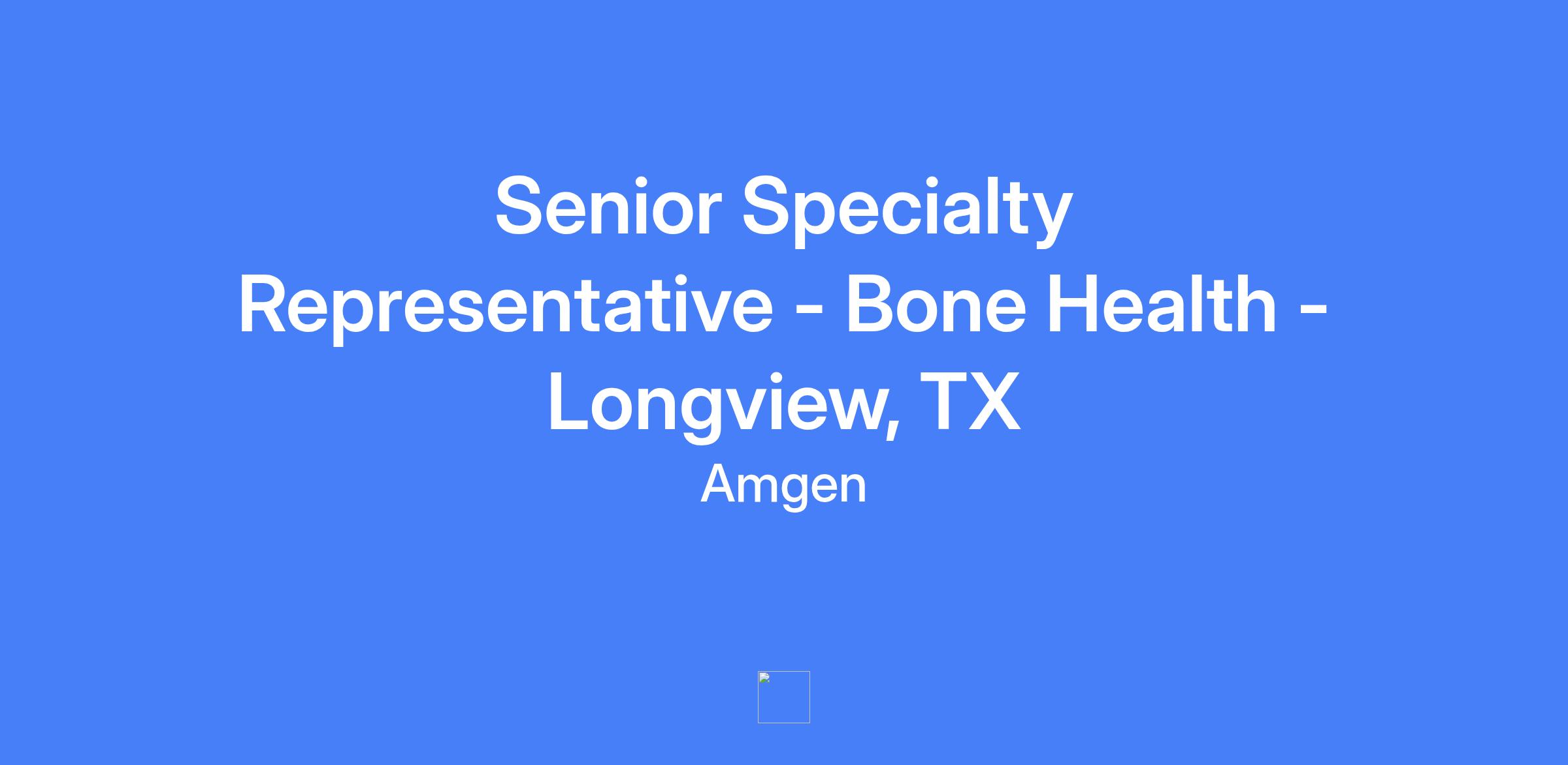 Senior Specialty Representative โ Bone Health. Territory includes Longview, Tyler, Texarkana, Lufkin, TX. Relocation not offered. Responsible for delivering clinical knowledge of Amgen products to medical professionals, promoting products, and implementing marketing strategy under the District Manager.