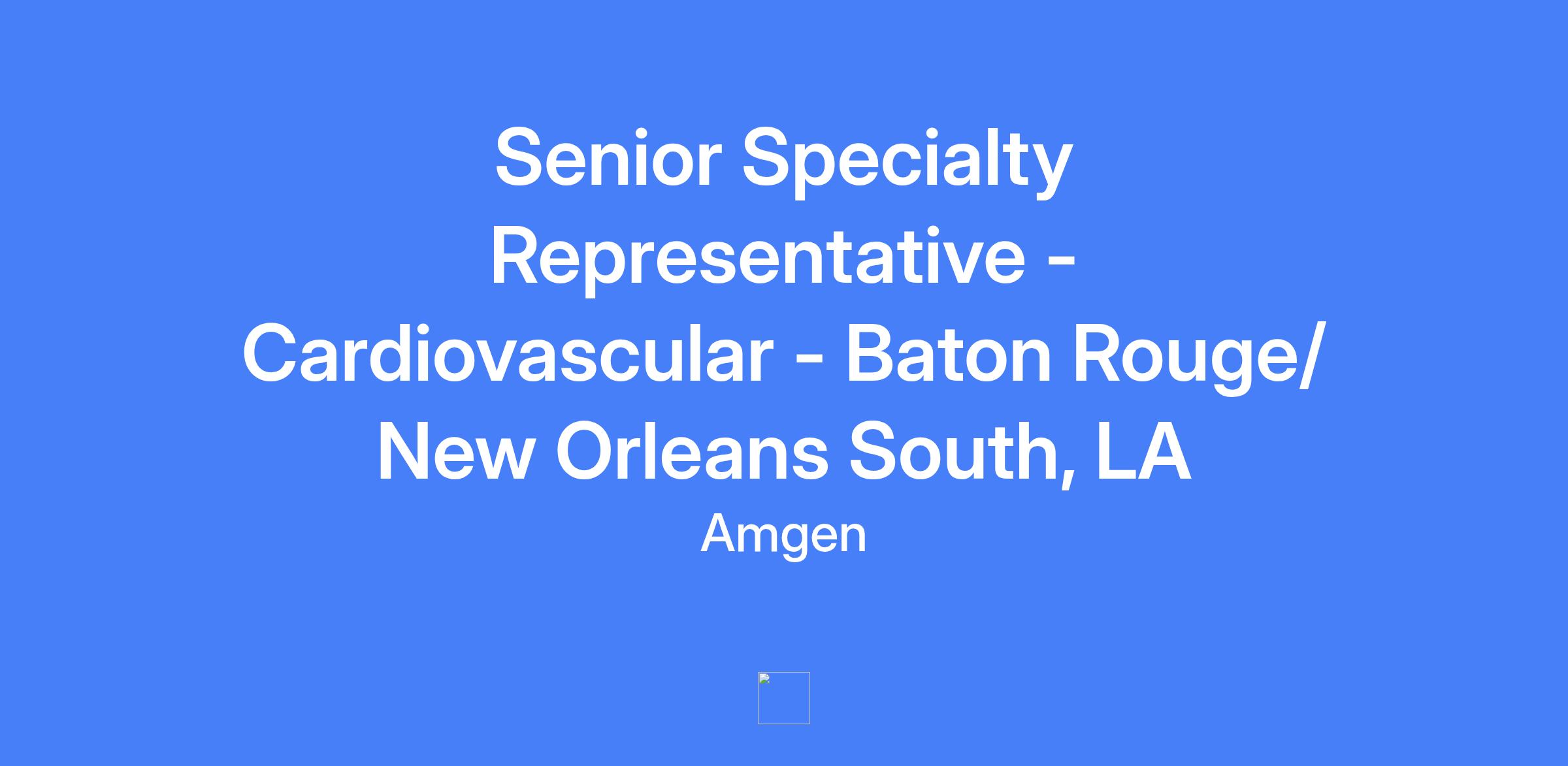 Senior Specialty Representative for Cardiovascular based in Baton Rouge / New Orleans South, LA. Territory covers Baton Rouge, Houma, Thibodaux. Relocation is not offered.