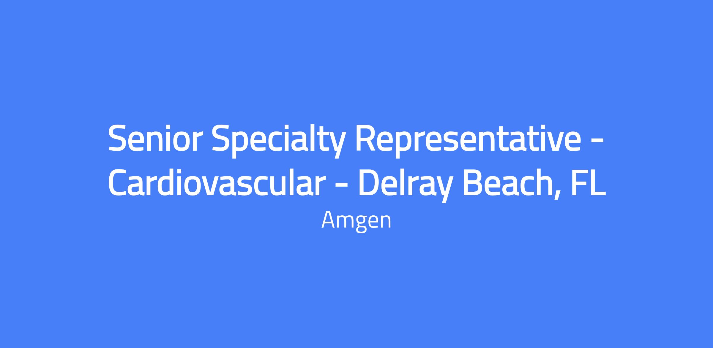 The Senior Specialty Representative for Cardiovascular in Delray Beach, FL serves as the primary customer contact, providing clinical knowledge of Amgen products to medical professionals and guiding them through the payer environment. This role implements marketing strategy under the direction of the District Manager, promotes products, and drives territory sales within the assigned region.