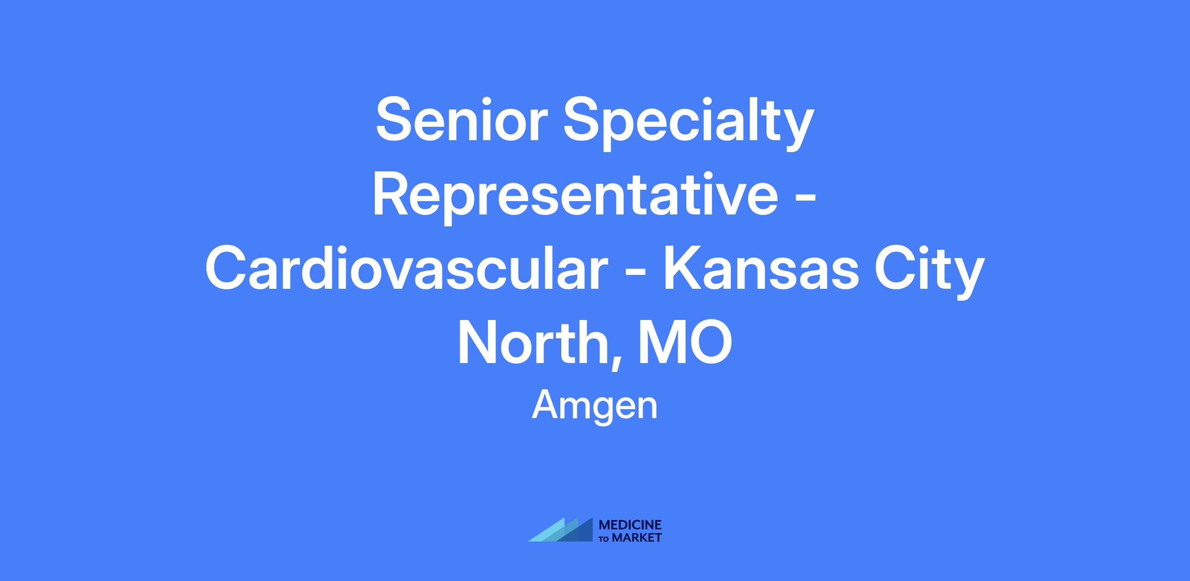 Senior Specialty Representative for Cardiovascular — Kansas City North, MO. Responsible for delivering clinical knowledge of Amgen products to medical professionals, promoting products, and executing marketing strategy under the guidance of the District Manager. Territory includes Kansas City North, Liberty, and St. Joseph, MO. Relocation is not offered.