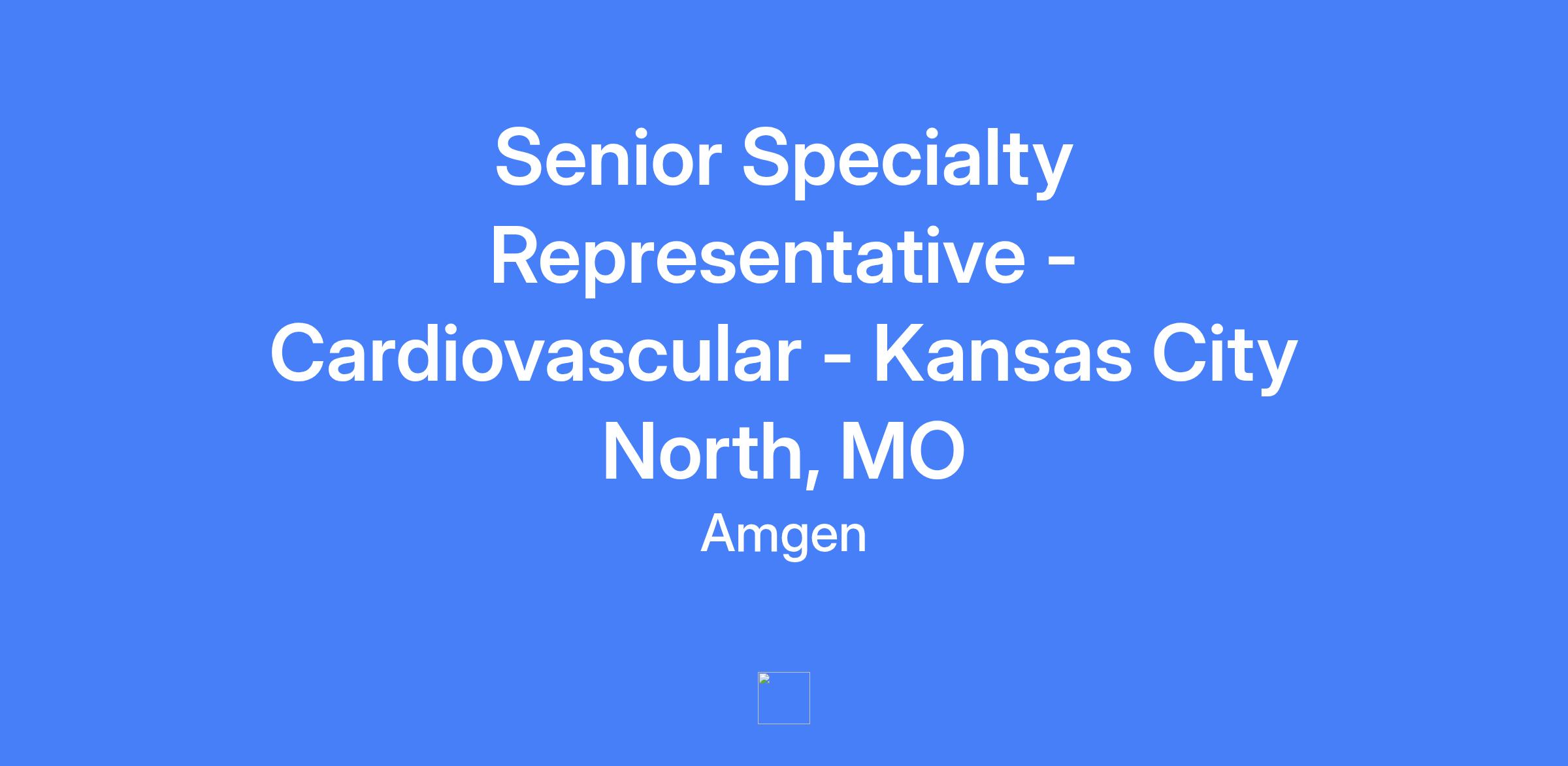 Senior Specialty Representative for Cardiovascular — Kansas City North, MO. Responsible for delivering clinical knowledge of Amgen products to medical professionals, promoting products, and executing marketing strategy under the guidance of the District Manager. Territory includes Kansas City North, Liberty, and St. Joseph, MO. Relocation is not offered.