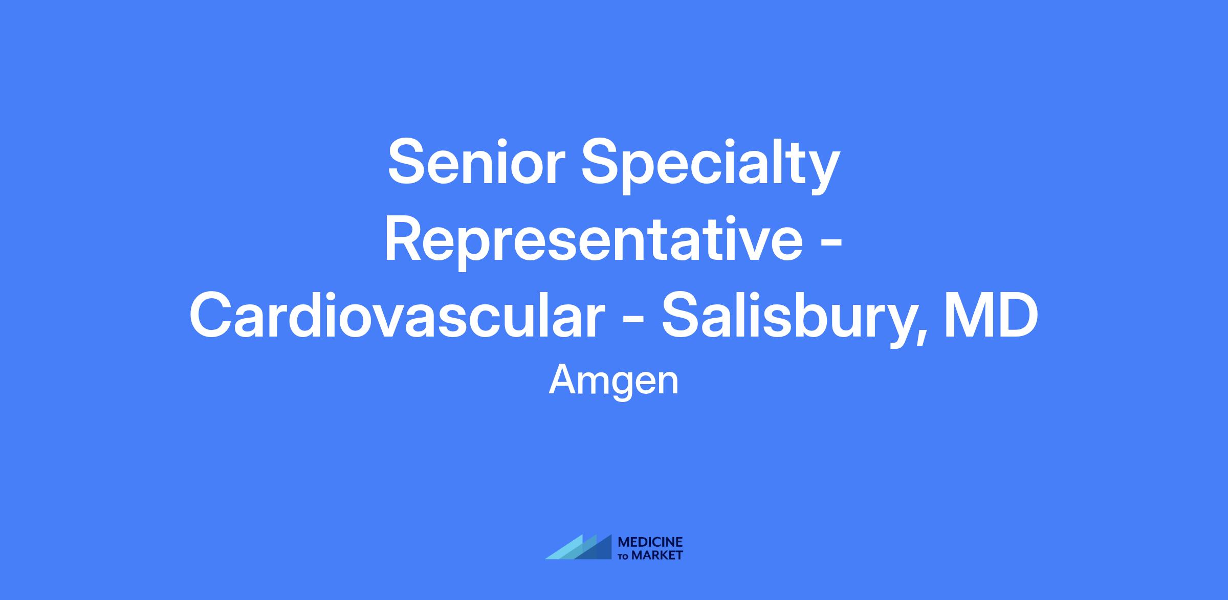 Senior Specialty Representative - Cardiovascular in Salisbury, MD. Territory covers Salisbury, MD. Relocation is not offered for this role.