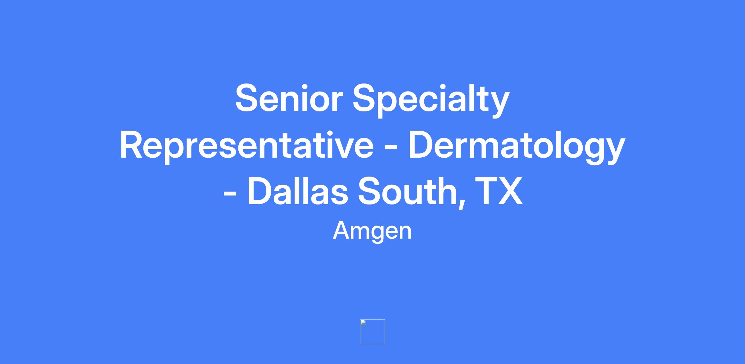Senior Specialty Representative in Dermatology for the Dallas South, TX area. Territory covers East Texas (Tyler, Longview, Texarkana) and South, SE and SW Dallas. Relocation is not offered for this role. The role acts as the primary customer contact, delivering clinical knowledge of Amgen products to medical professionals and helping navigate the payer environment, and implements marketing strategy as led by the District Manager.