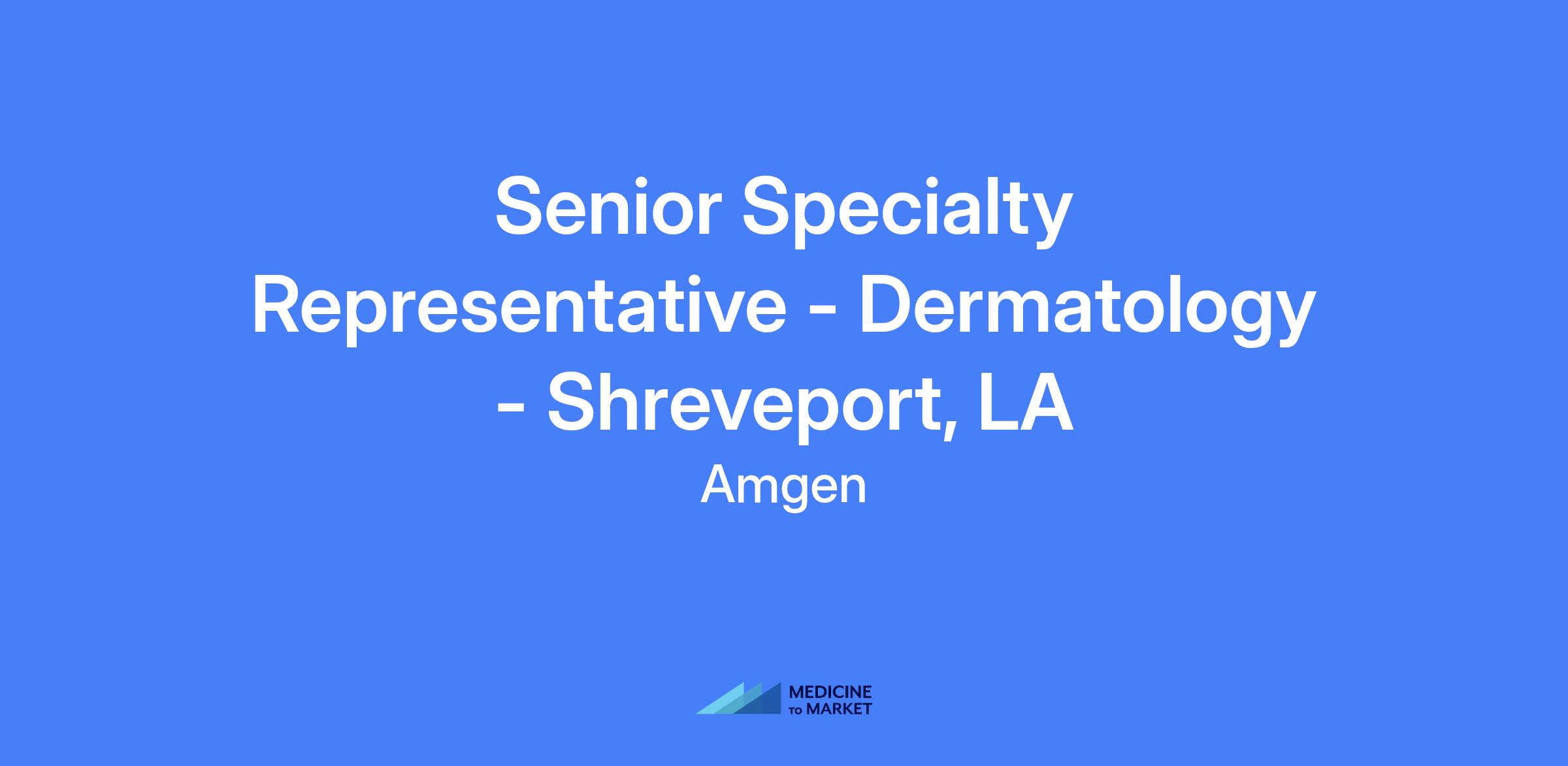 Senior Specialty Representative - Dermatology, Shreveport, LA. Territory includes Shreveport LA, Jackson MS, Flowood MS, Monroe LA, and Alexandria LA. Relocation not offered.