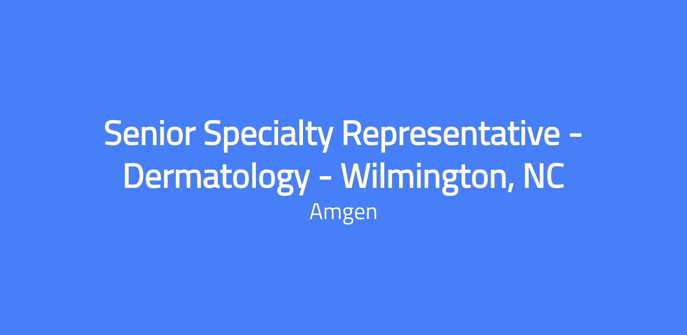 Senior Specialty Representative for Dermatology in Wilmington, NC, responsible for delivering clinical knowledge of Amgen products to medical professionals and guiding payor navigation. Acts as the primary customer contact to implement marketing strategy and promote Amgen products under district leadership. Territory includes Wilmington, Jacksonville, Morehead City, New Bern, and Greenville, NC.