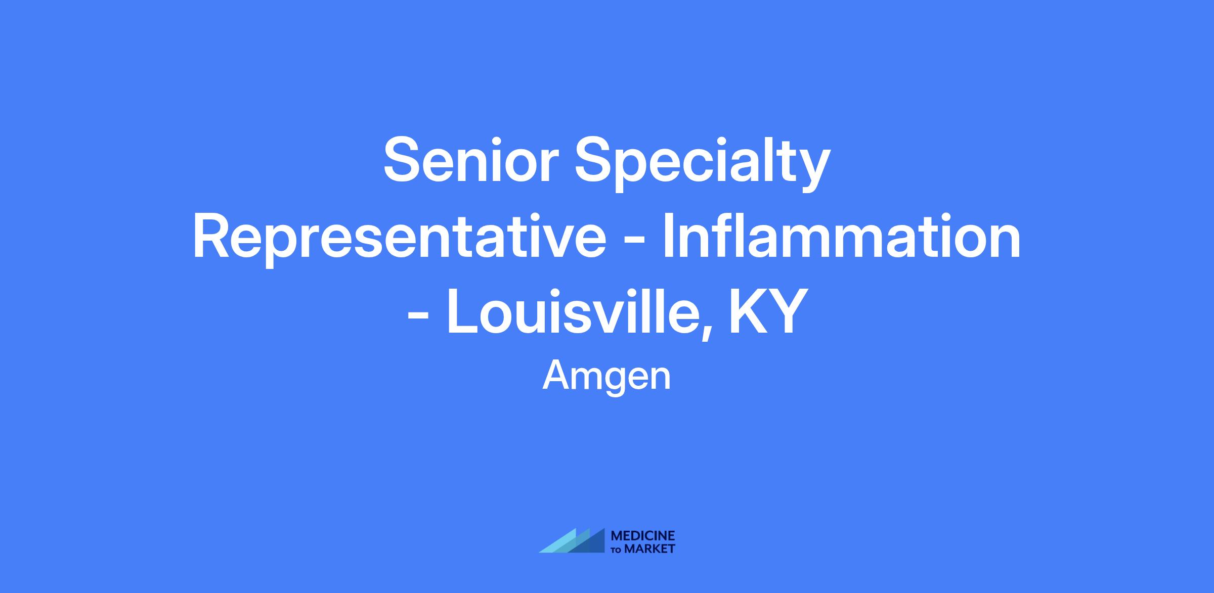 Senior Specialty Representative - Inflammation - Louisville, KY. Territory covers Louisville, KY, New Albany, IN, Jeffersonville, IN and Bloomington, IN. Relocation is not offered for this role.