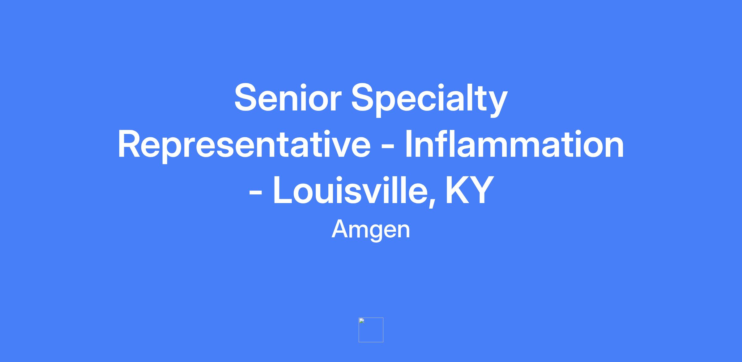 Senior Specialty Representative - Inflammation - Louisville, KY. Territory covers Louisville, KY, New Albany, IN, Jeffersonville, IN and Bloomington, IN. Relocation is not offered for this role.