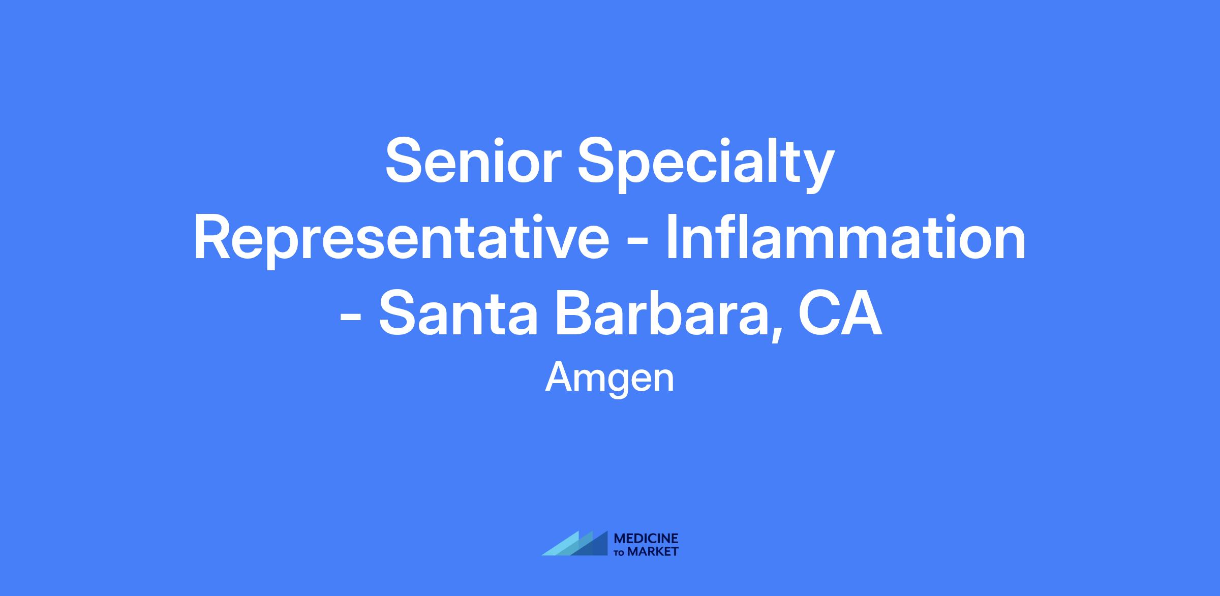 Senior Specialty Representative - Inflammation - Santa Barbara, CA. Relocation is not offered for this role.