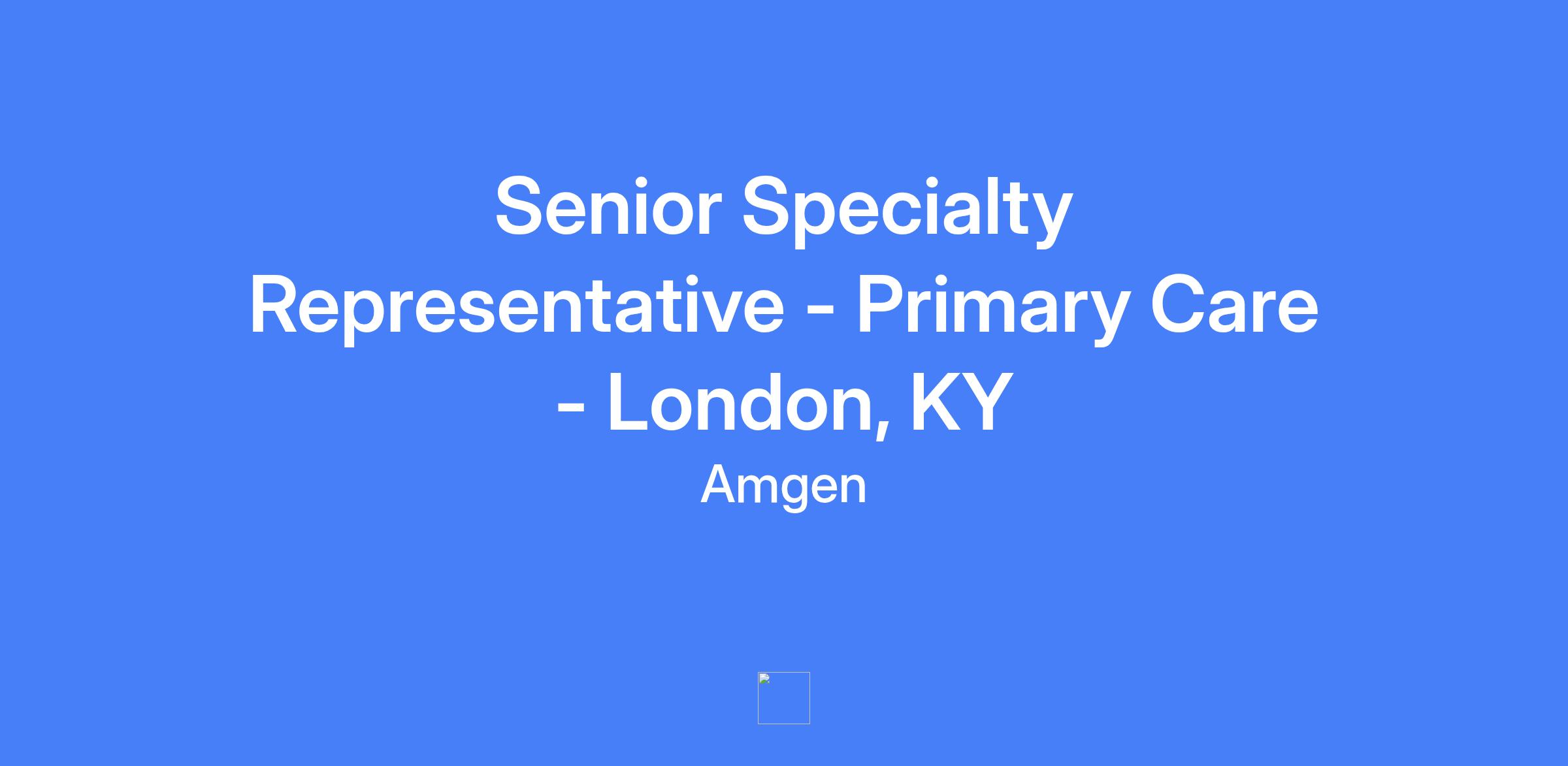 Senior Specialty Representative - Primary Care role in London, KY. Responsible for delivering clinical knowledge of Amgen products to medical professionals, promoting products, and navigating the payer environment as directed by the District Manager.