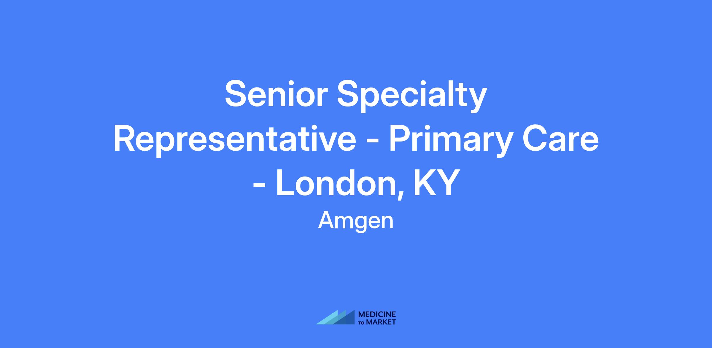 Senior Specialty Representative - Primary Care role in London, KY. Responsible for delivering clinical knowledge of Amgen products to medical professionals, promoting products, and navigating the payer environment as directed by the District Manager.