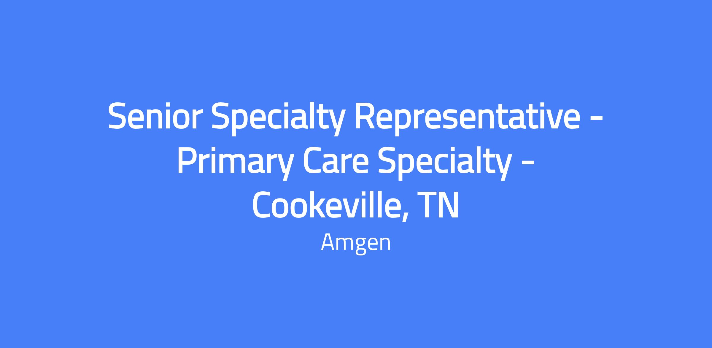 Senior Specialty Representative for Primary Care in Cookeville, TN. Acts as the primary customer contact, delivering clinical knowledge of Amgen products and promoting branded messages as directed by the District Manager. Builds and maintains relationships with medical professionals to support territory sales and patient access.