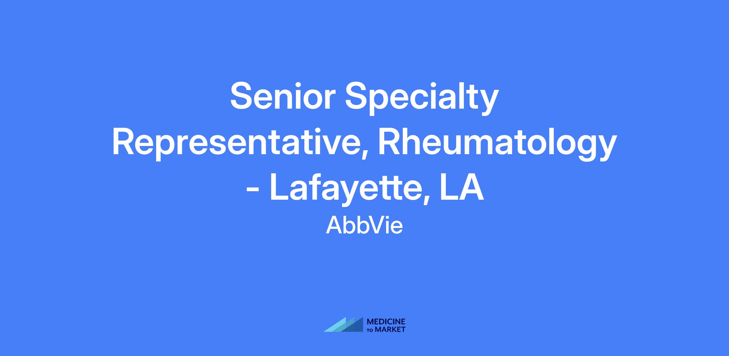 Senior Specialty Representative, Rheumatology - Lafayette, LA. Field-based role covering Lafayette, Shreveport, Beaumont, Monroe, Alexandria and surrounding areas. Role focuses on executing brand strategy and tactics in the field, managing territory and targeted accounts, building strong customer relationships, and solving customer needs to maximize short and long term sales performance while adhering to AbbVie's code of conduct and applicable laws.