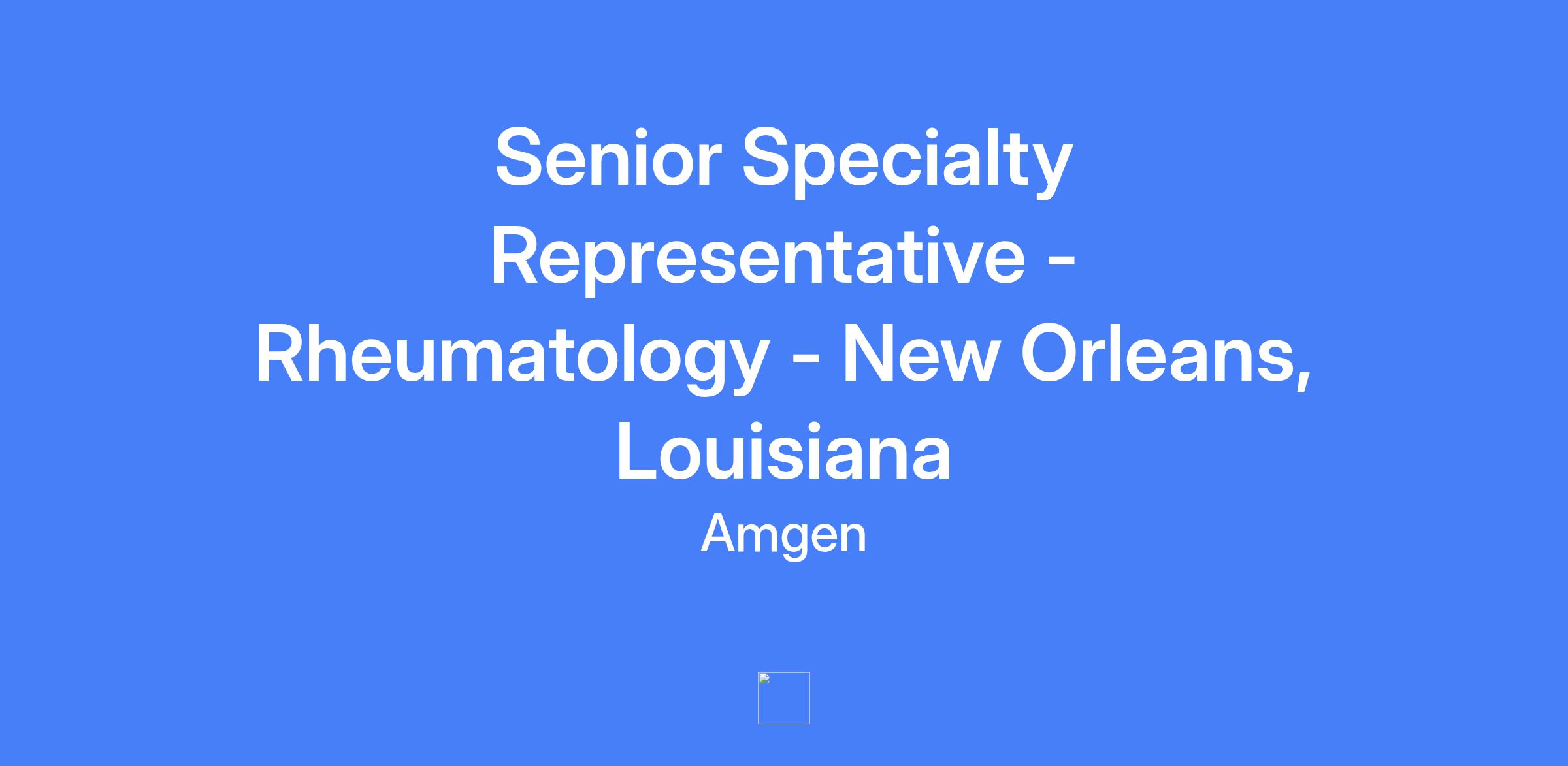 Senior Specialty Representative for Rheumatology in New Orleans, LA. Primary customer contact responsible for implementing marketing strategy and promoting Amgen products as led by the District Manager.