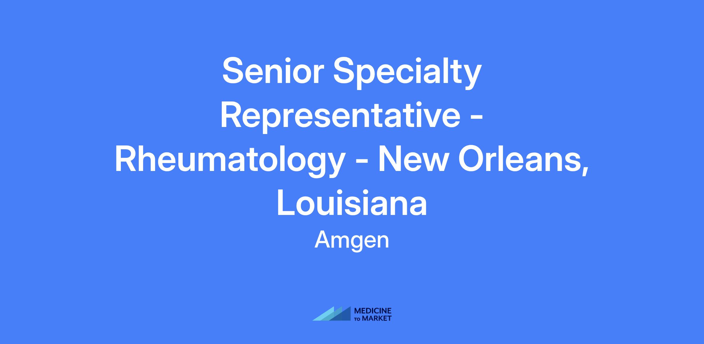 Senior Specialty Representative for Rheumatology in New Orleans, LA. Primary customer contact responsible for implementing marketing strategy and promoting Amgen products as led by the District Manager.