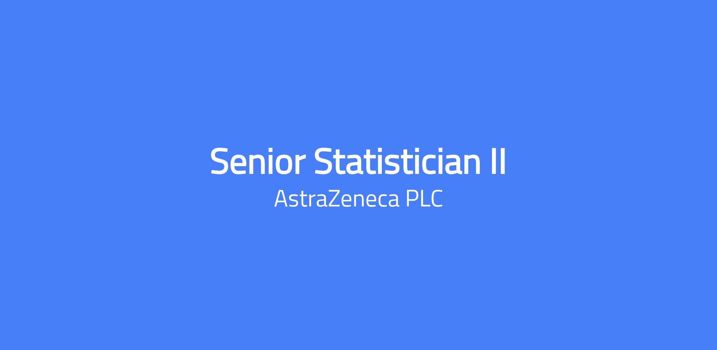 Senior Statistician II Location: Gaithersburg The Senior Statistician II has sufficient experience working as a statistician in the pharmaceutical industry to be working independently on activities relating to design, delivery and interpretation, regulatory submissions and/or commercialisation.  This individual is able to perform and communicate results of more technical analyses, and able to guide less experienced staff.  They have the scope to develop creative statistical ideas and approaches, and to apply them in their work.  Competent individual contributor with excellent cross-functional collaboration.  Typical Accountabilities  The Senior Statistician II will work directly within a project.   The accountabilities for supporting projects directly are: • Provide statistical expertise for complex design and interpretation for clinical programmes, high level internal governance committees, regulatory submissions and/or commercialisation • Analyse internal and external information, perform modelling and simulation to inform design decisions and the development of decision criteria • Develop a Statistical Analysis plan for complex studies and/or project deliveries • Act as a coach/guide for less experienced statisticians in the production of analysis, supporting graphics and analysis tables for study reports, Global Medical Affairs studies or publications • Able to analyse, interpret, summarise and communicate results of complex studies • Contribute to the regulatory submissions including specification of overview documents and response to regulatory questions • Identify opportunities for the application of modelling and simulation to improve study design • Identify opportunities to improve the methodology and provide practical solutions for problems • Identify and apply statistical methodology to improve the process and delivery activities • Contribute to the development of best practice to improve quality, efficiency and effectiveness • Accountable for the quality of their statistical work; provide discipline-specific understanding, insight and constructive challenge and take ownership of development needs, seek coaching or training opportunities Education, Qualifications, Skills and Experience Essential • MSc/PhD in Statistics, Mathematics (containing a substantial statistical component), or recognised equivalent to stats MSc . 3+ yrs experience of pharmaceutical development, data analysis and interpretation. • Competent statistical programmer (SAS and R) • Knowledge of key technical and regulatory requirements • Experience of design, analysis and reporting of clinical studies in more than one setting • Communication skills • Collaboration and team working skills • Experience and knowledge of statistical methods and applications in study design, analysis and interpretation   Desirable • Collaboration skills required   • Ability to apply statistical expertise to problems, problem solving and quality focus   AstraZeneca embraces diversity and equality of opportunity.  We are committed to building an inclusive and diverse team representing all backgrounds, with as wide a range of perspectives as possible, and harnessing industry-leading skills.  We believe that the more inclusive we are, the better our work will be.  We welcome and consider applications to join our team from all qualified candidates, regardless of their characteristics.  We comply with all applicable laws and regulations on non-discrimination in employment (and recruitment), as well as work authorization and employment eligibility verification requirements. To receive notifications about future job opportunities, go to the 'Internal Jobs' tab on the Talent Intelligence Platform and create a job alert. The annual base pay for this position ranges from $119,000 to $179,000. Our positions offer eligibility for various incentives—an opportunity to receive short-term incentive bonuses, equity-based awards for salaried roles and commissions for sales roles. Benefits offered include qualified retirement programs, paid time off (i.e., vacation, holiday, and leaves), as well as health, dental, and vision coverage in accordance with the terms of the applicable plans. Date Posted 07-Apr-2026 Closing Date 13-Apr-2026 Our mission is to build an inclusive environment where equal employment opportunities are available to all applicants and employees. In furtherance of that mission, we welcome and consider applications from all qualified candidates, regardless of their protected characteristics. If you have a disability or special need that requires accommodation, please complete the corresponding section in the application form. AstraZeneca is a global, science-led, patient-focused biopharmaceutical company. We focus on discovering, developing and commercialising prescription medicines for some of the world’s most serious diseases. But we are more than one of the world’s leading pharmaceutical companies. At AstraZeneca, we’re dedicated to being a Great Place to Work. Where you are empowered to push the boundaries of science, challenge convention and unleash your entrepreneurial spirit. To embrace differences and take bold actions to drive the change needed to meet global healthcare and sustainability challenges. There is no better place to make a difference in medicine, patients, and society. An inclusive culture where you will connect different thinking to generate new and valuable opportunities. Where you will find a commitment to lifelong learning, growth and development for all. Our Inclusion & Diversity (I&D) mission is to create an inclusive and equitable environment where people belong, using the power of our diversity to push the boundaries of science to deliver life-changing medicines to patients. Inclusion and diversity are fundamental to the success of our company, because innovation requires breakthrough ideas that only come from a diverse workforce e