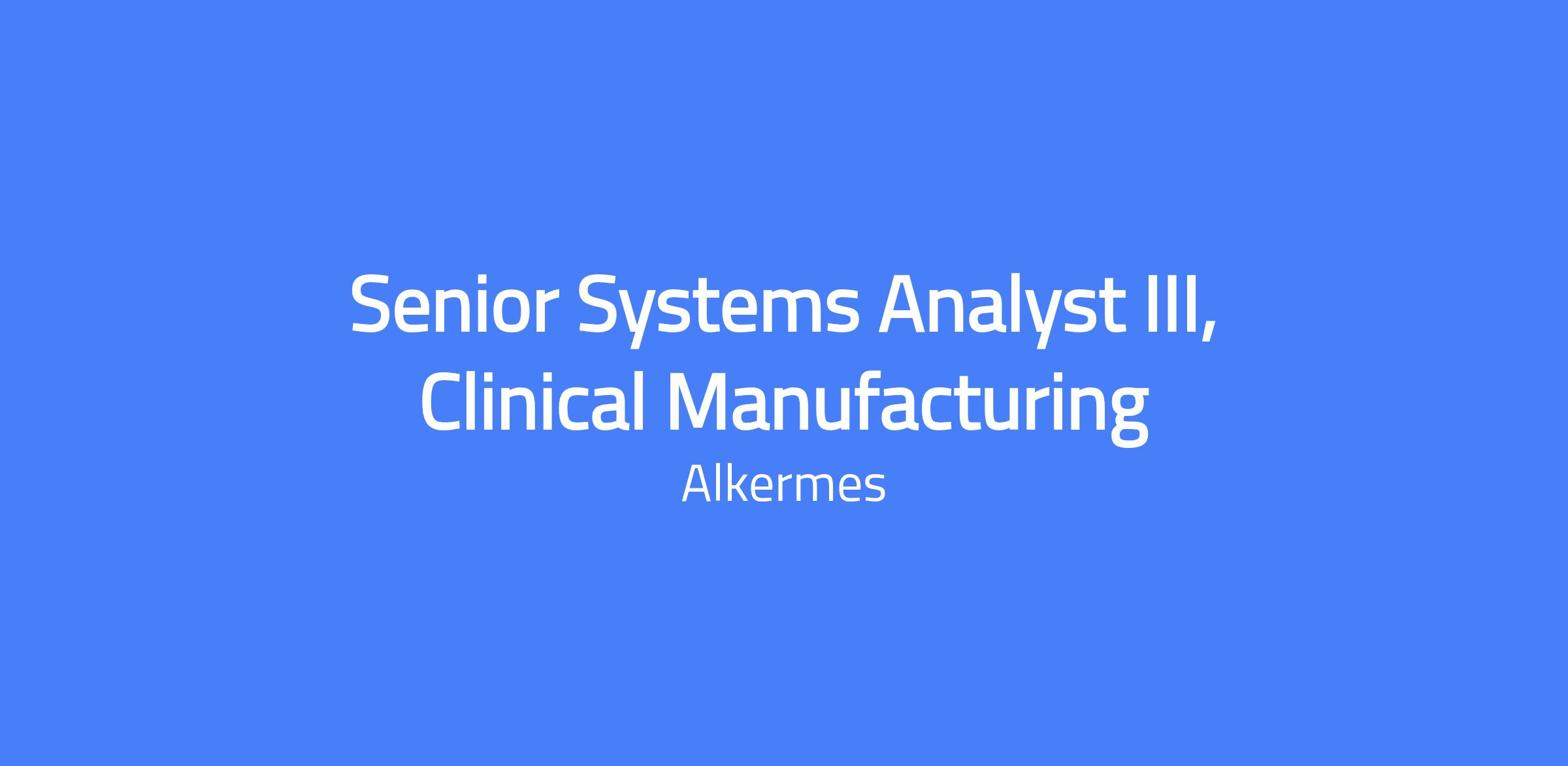 The IT Senior System Analyst III for Clinical Manufacturing Suite will lead all technology implementation, production support, and maintenance activities within the Clinical Manufacturing Suite, ensuring systems are reliable, secure, and compliant with GMP and GxP requirements. This position will be responsible for authoring and enforcing SOPs to meet GMP guidelines, onboarding and validating new equipment, maintaining compliance of existing systems, and driving the implementation of new IT GxP solutions such as Data Historian and LIMS. Partnering closely with CMC, quality, and regulatory teams, the IT Senior System Analyst III ensures alignment with FDA and global regulatory standards while fostering continuous improvement, operational excellence, and strong collaboration across the organization. The role requires deep knowledge of pharmaceutical manufacturing processes, regulatory compliance, and IT systems integration to ensure reliable, secure, and compliant operations.