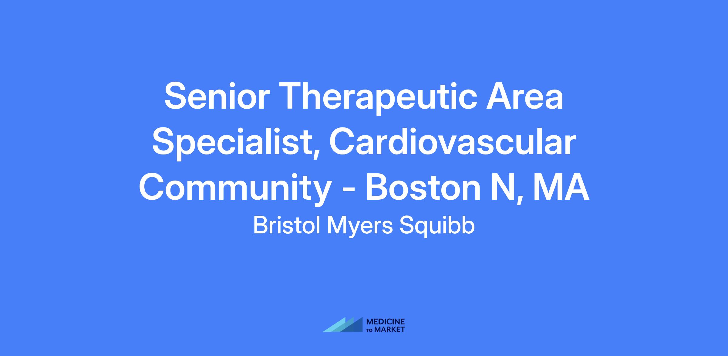 Senior Therapeutic Area Specialist, Cardiovascular Community - Boston N, MA. The TAS drives demand for BMS medicines within their portfolio for the appropriate patients, engaging HCPs with a differentiated Customer Experience through deeper scientific dialogue, and maintaining credibility with regional thought leaders and community-based physicians/HCPs. The role is field-based, with 100% time in the field with external customers.